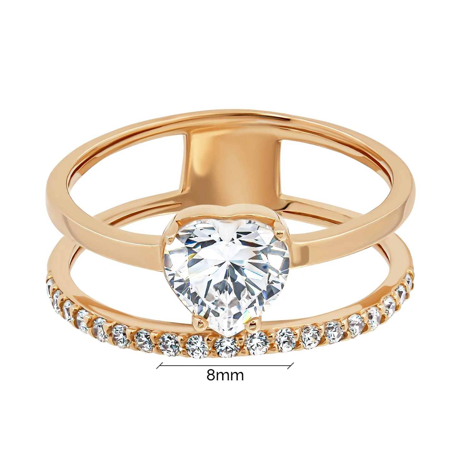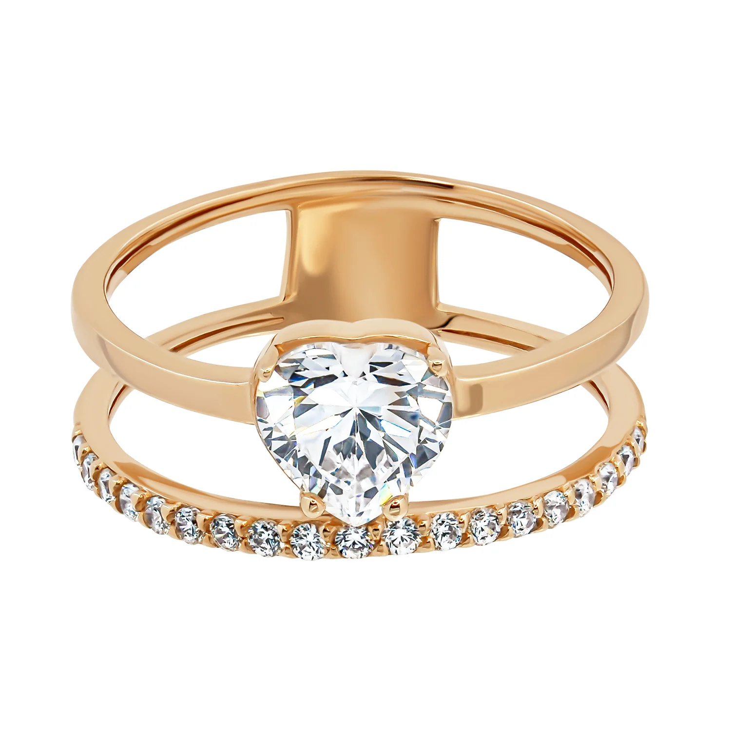 Кольцо двойное из красного золота "Сердце" с фианитами - 1345757