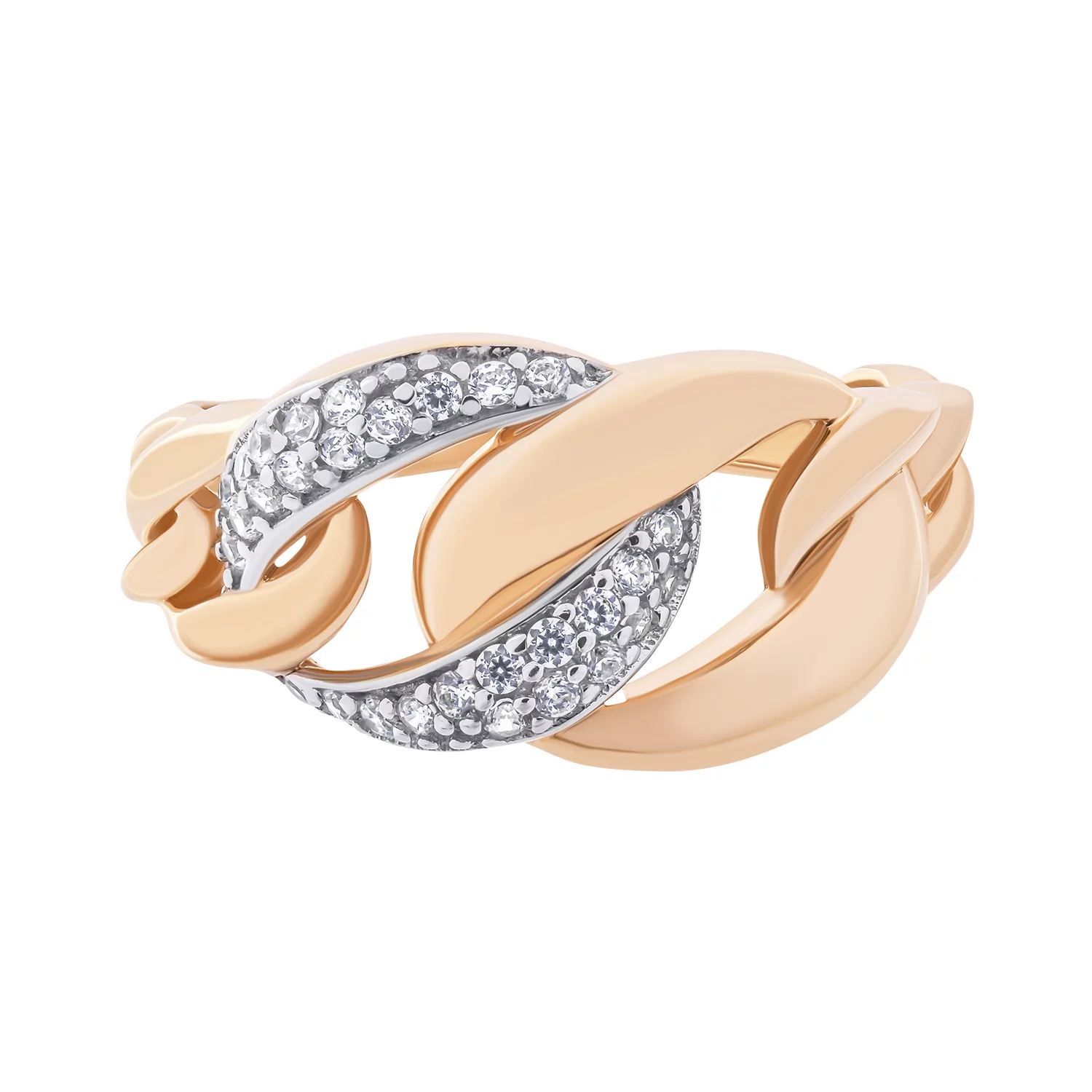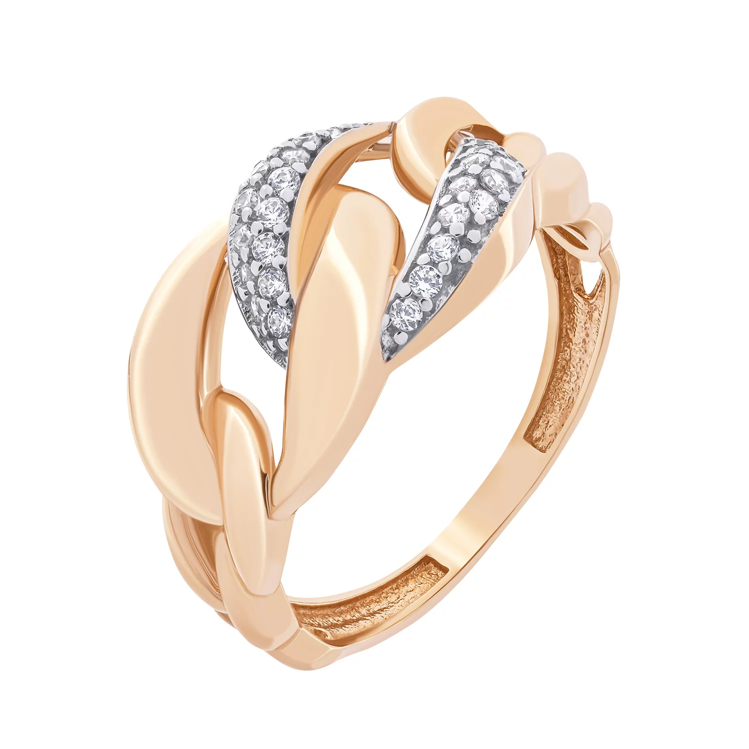 Кольцо из красного золота "Звенья" с фианитами - 1500652