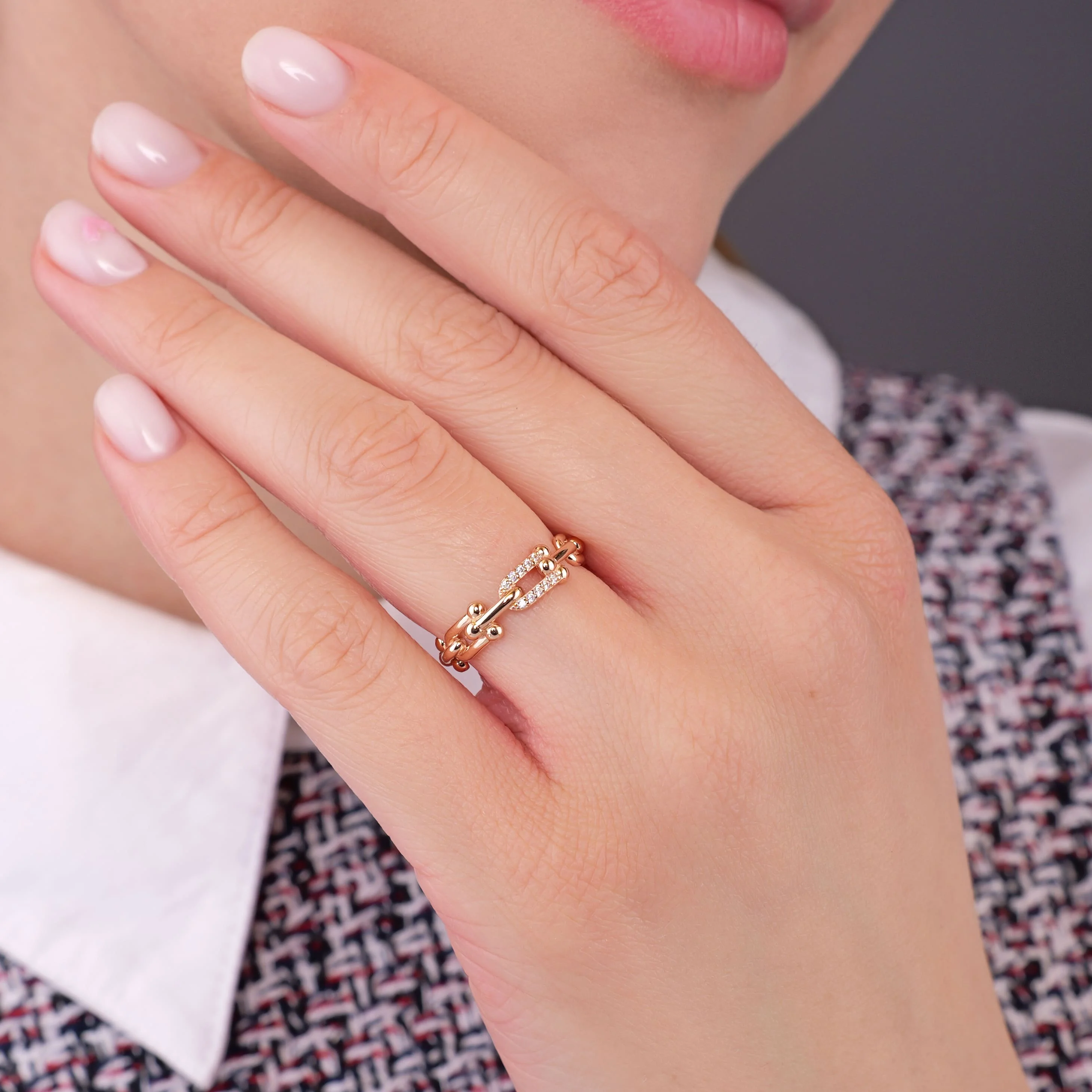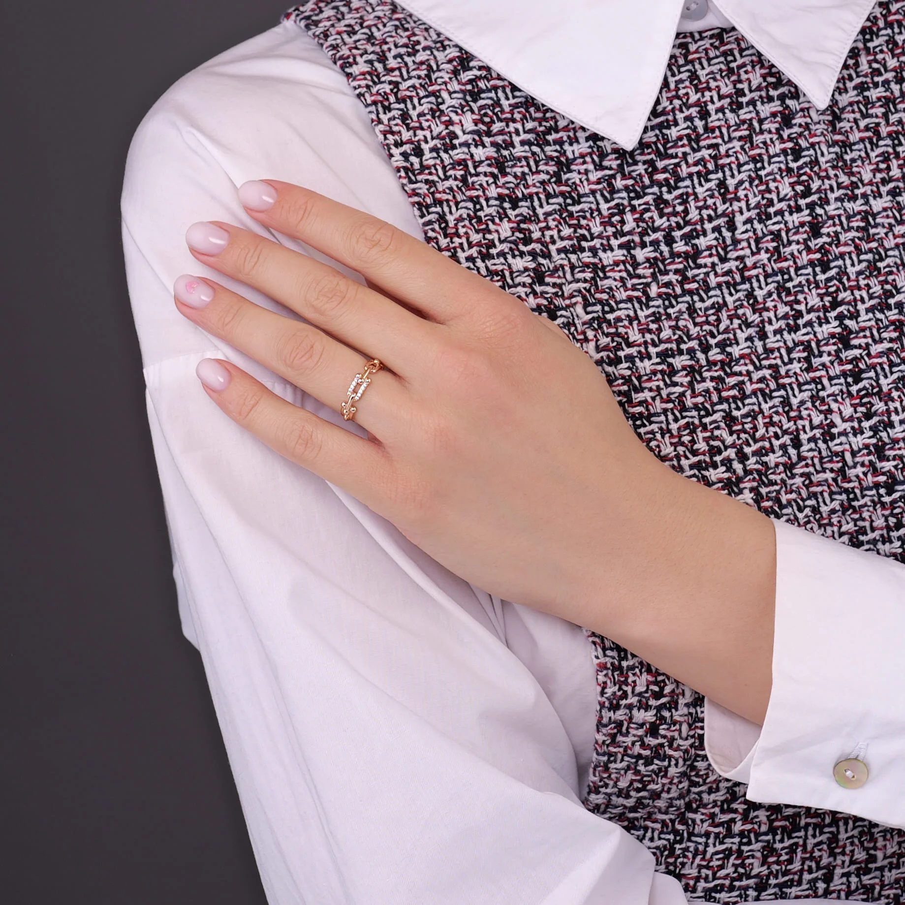 Кольцо из красного золота "Звенья" с фианитами - 1976476