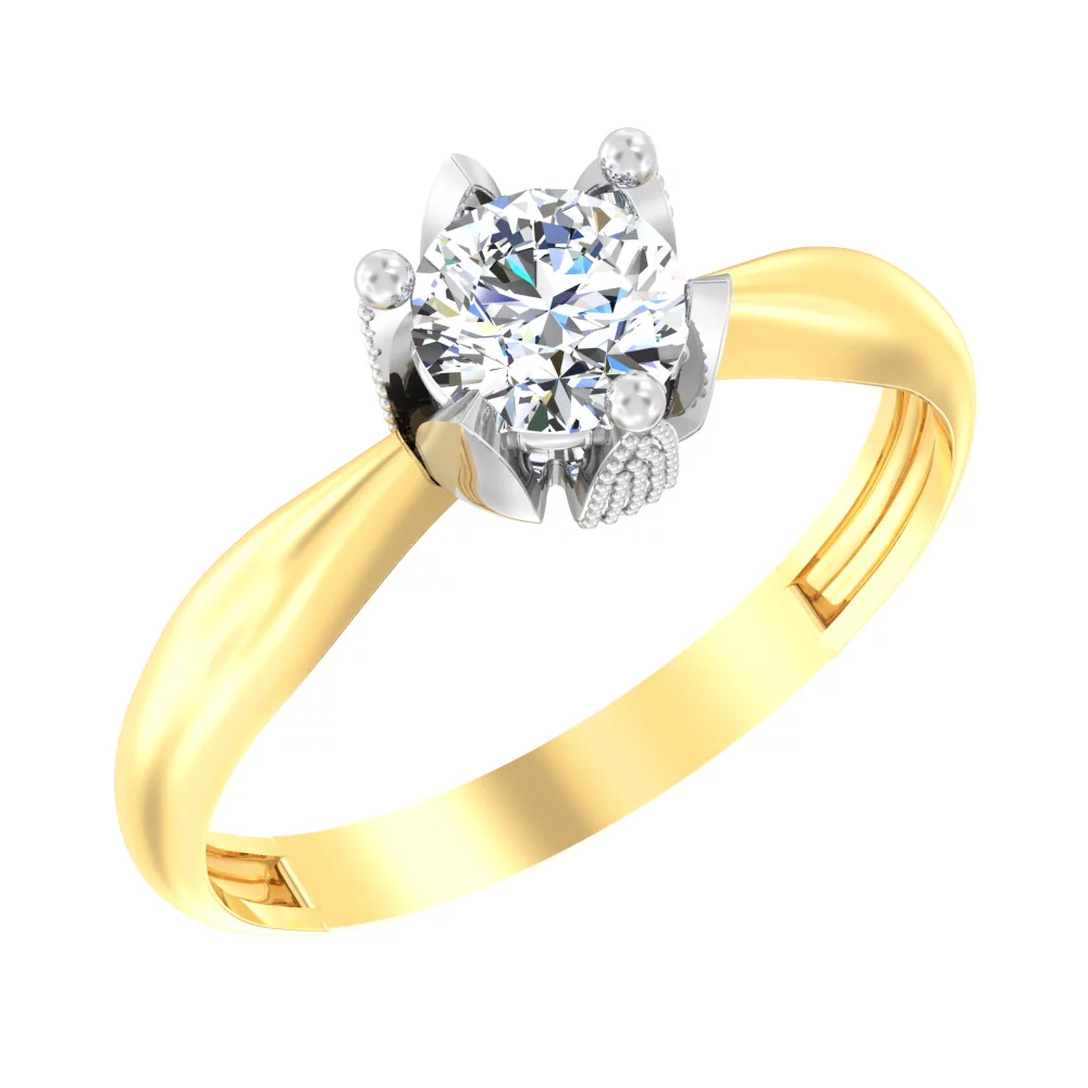 Кольцо из лимонного золота с фианитом - 1514345