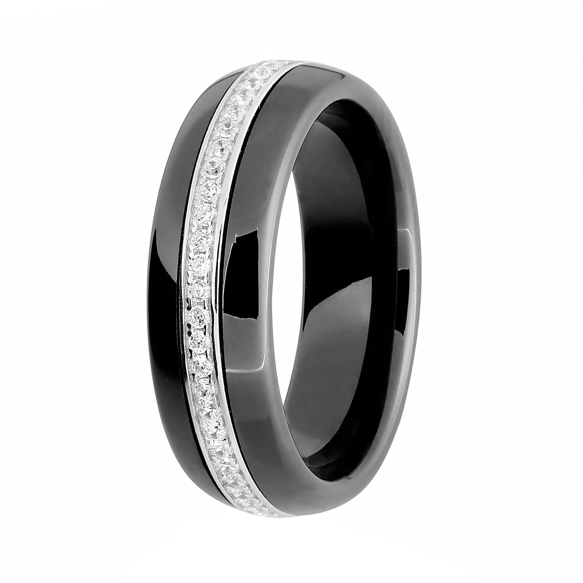 Кольцо из серебра и керамики с дорожкой из фианитов - 1536073