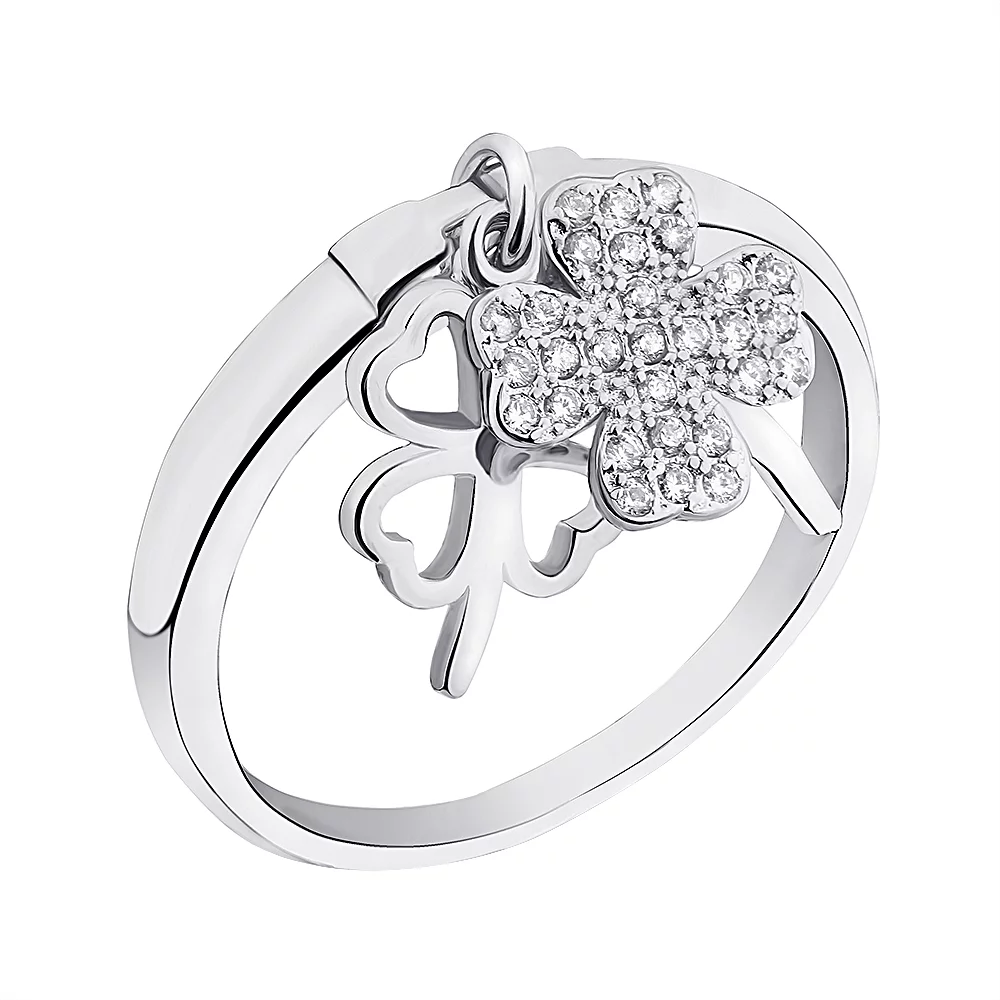 Кольцо из серебра "Клевер" с подвесами и фианитами - 1515928