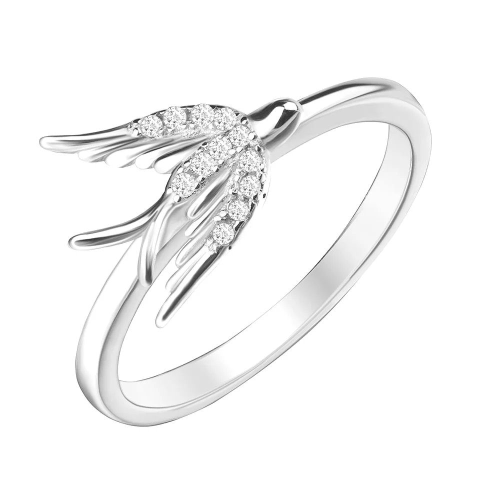 Кольцо из серебра "Ласточка" с фианитами - 1536055