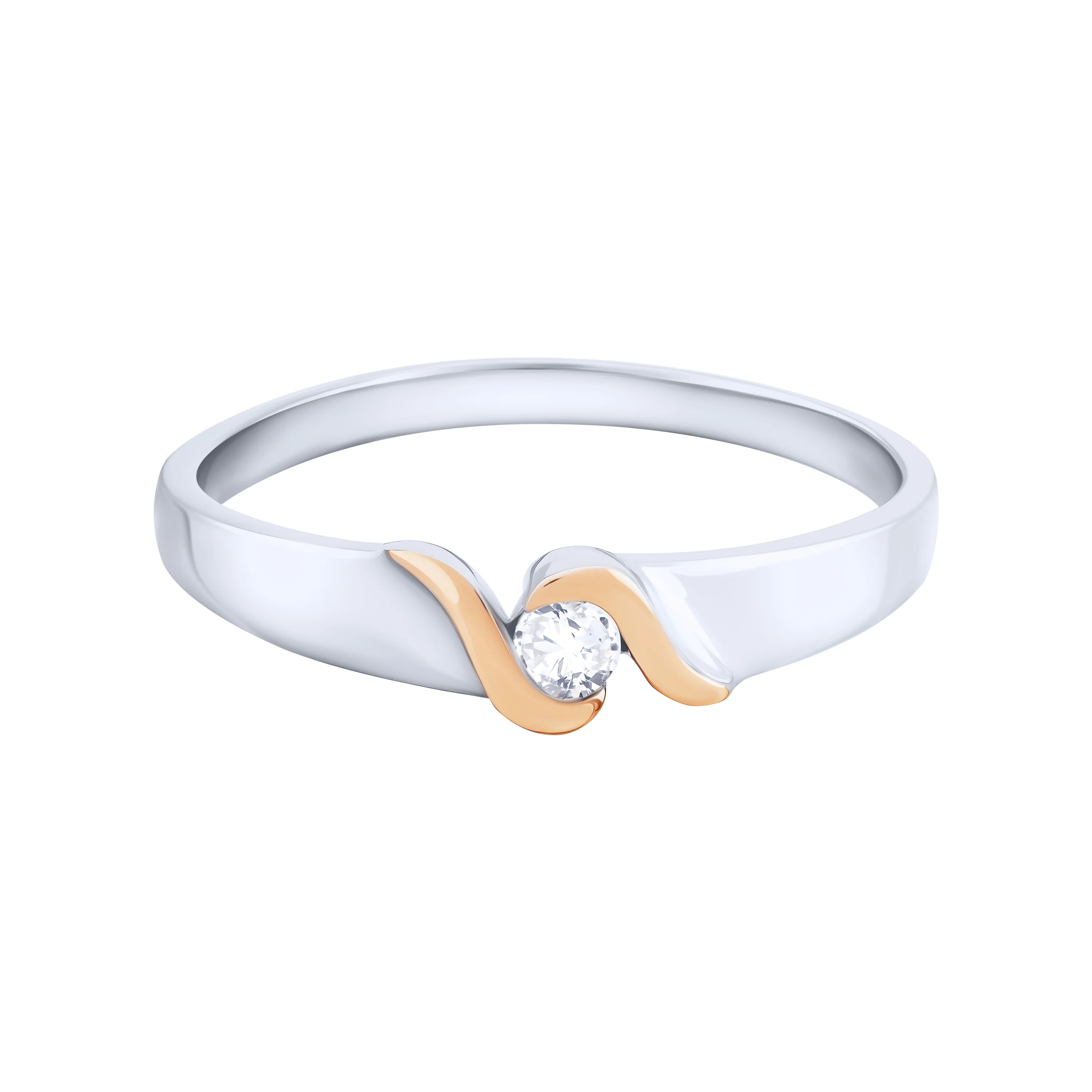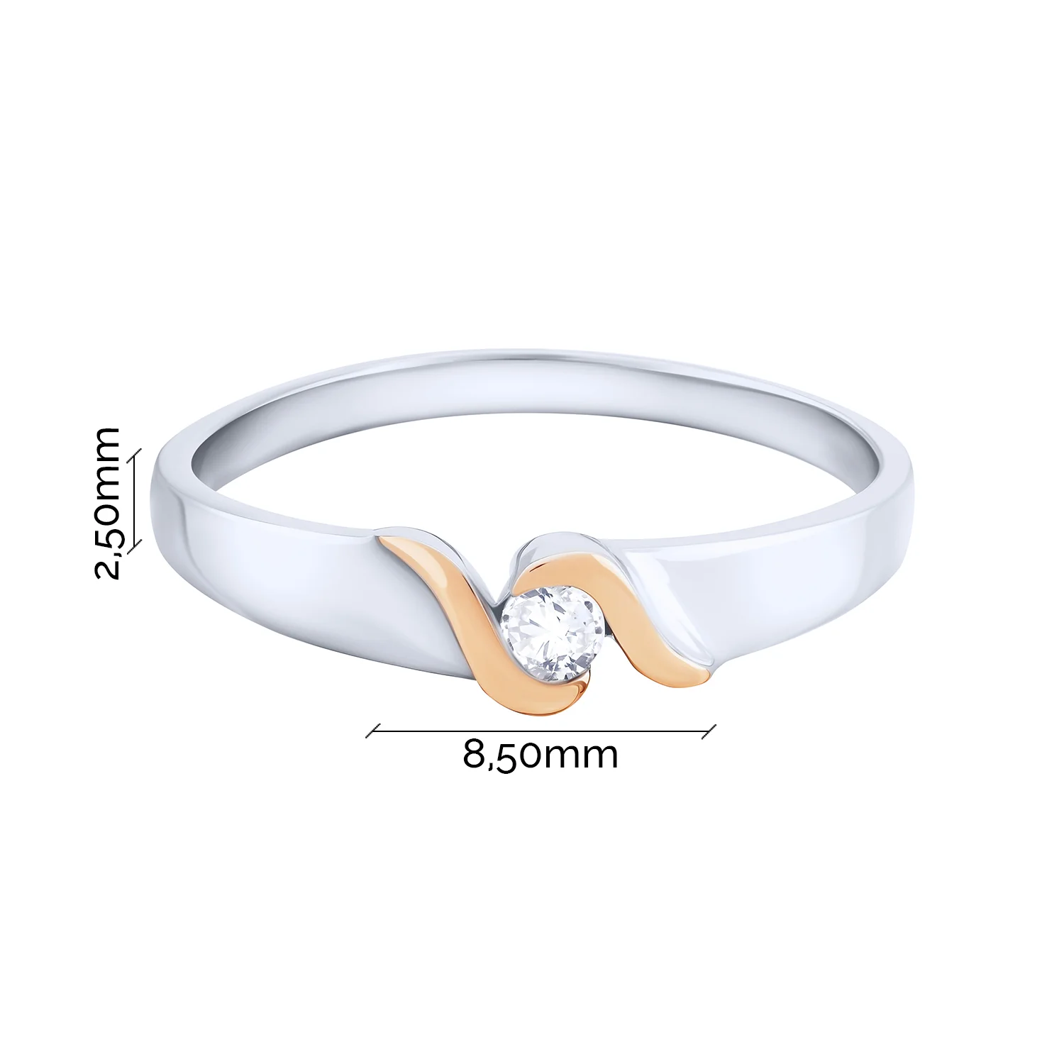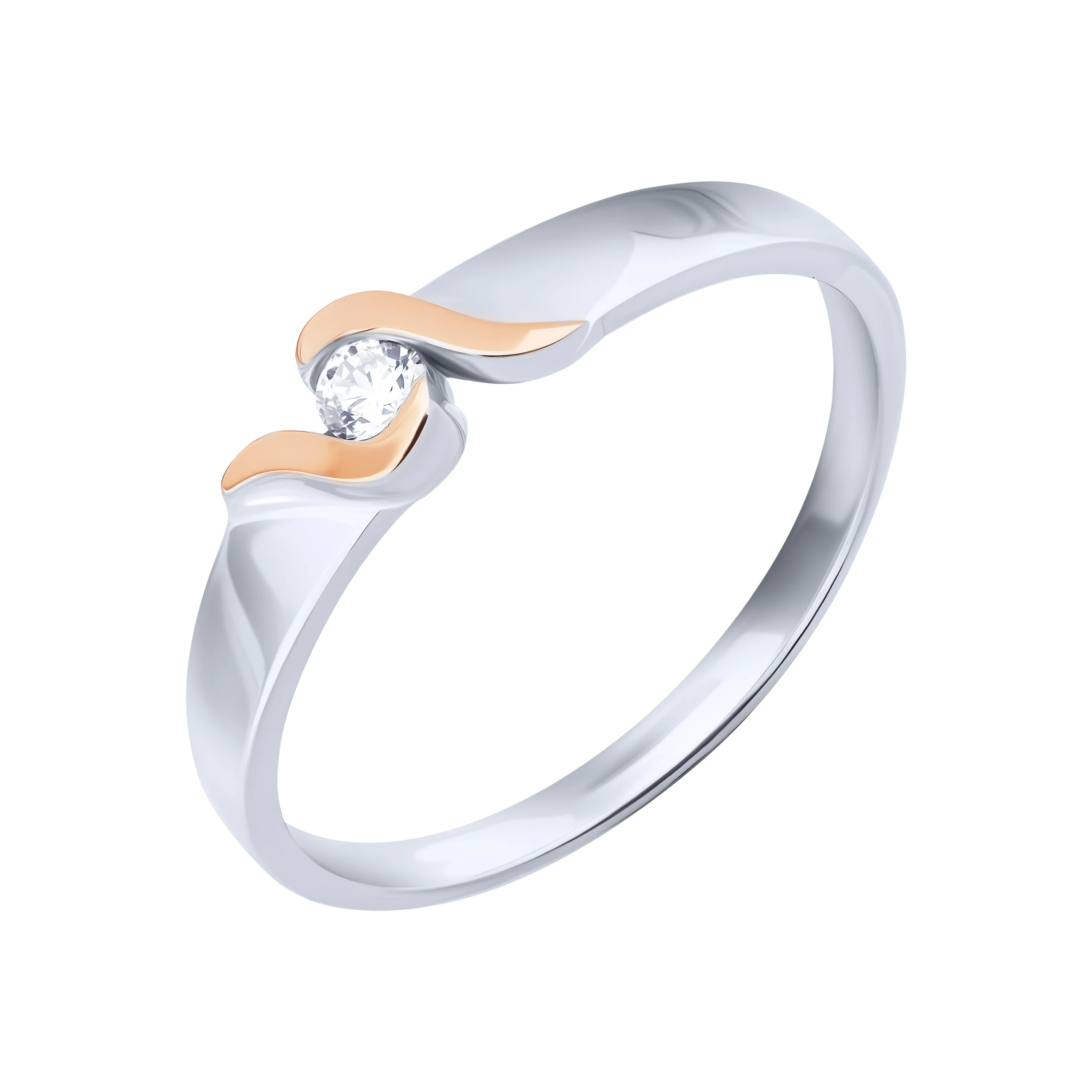 Кольцо из серебра с фианитом и золотой накладкой - 2117786