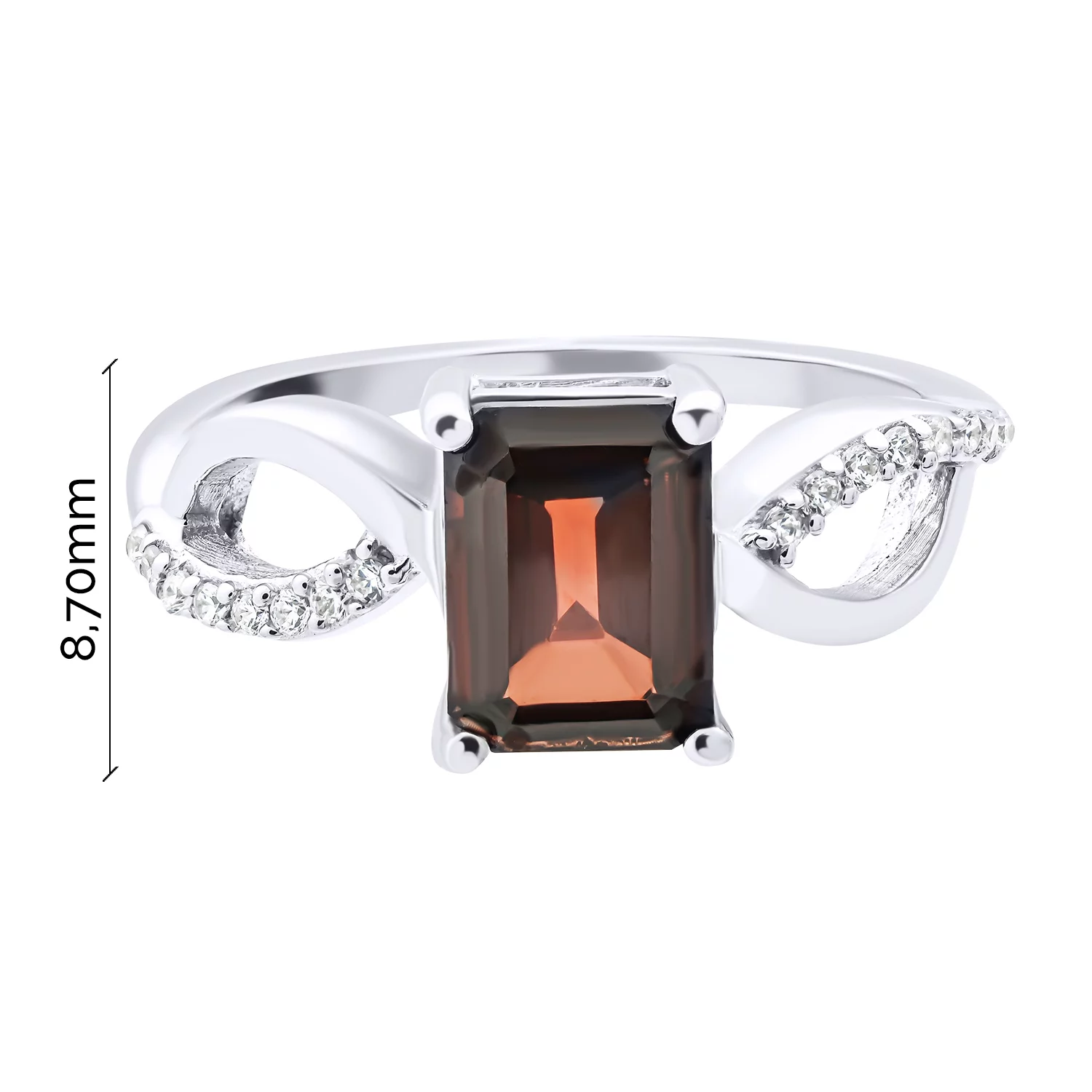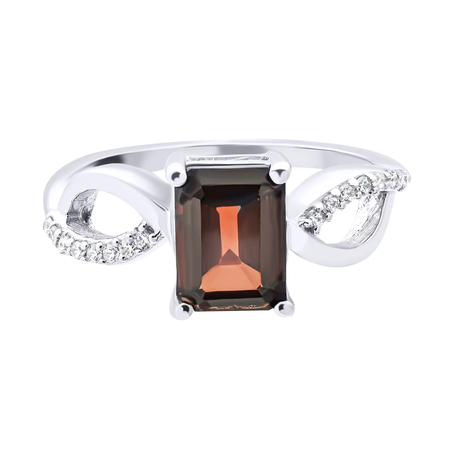 Кольцо из серебра с гранатом и дорожкой фианитов - 1524716