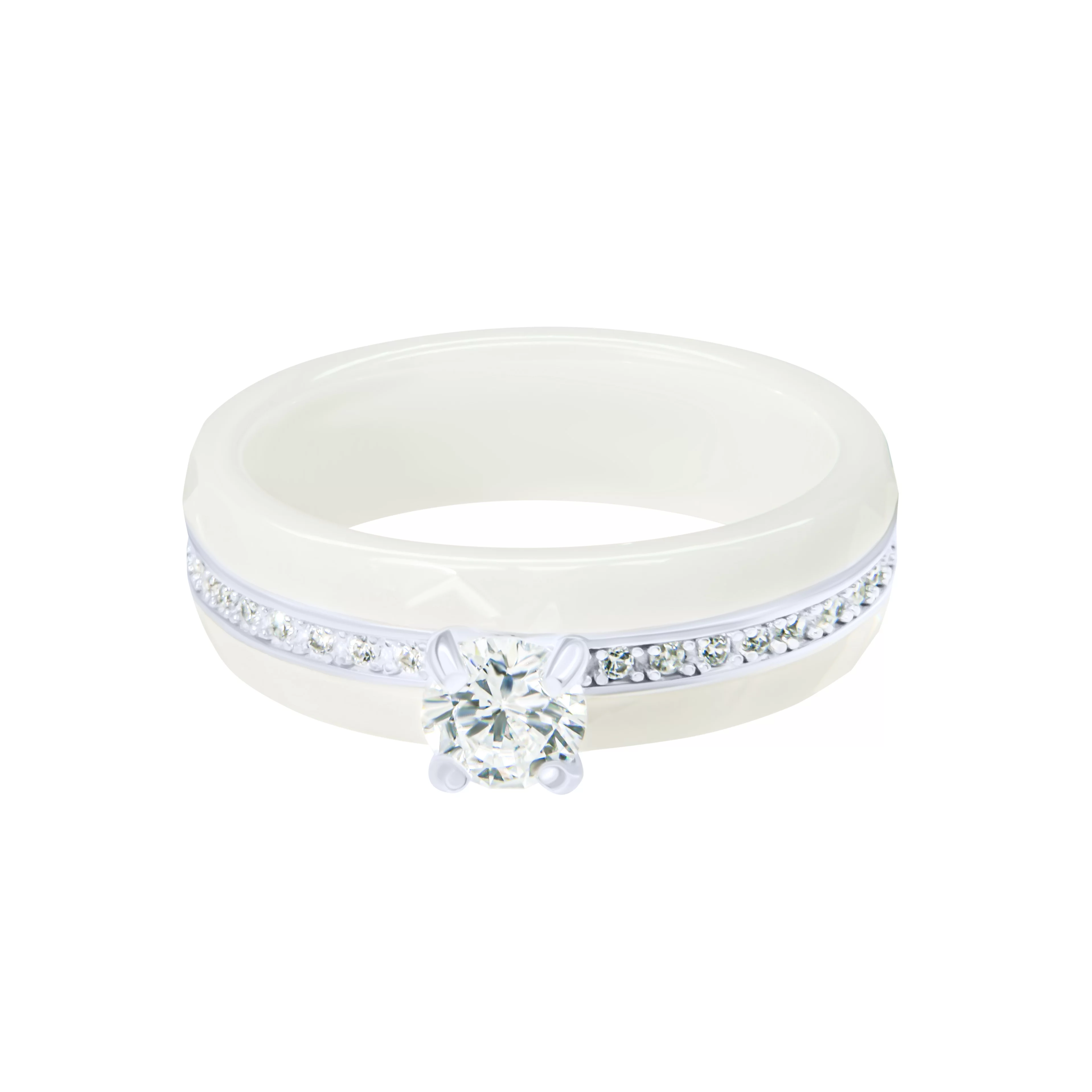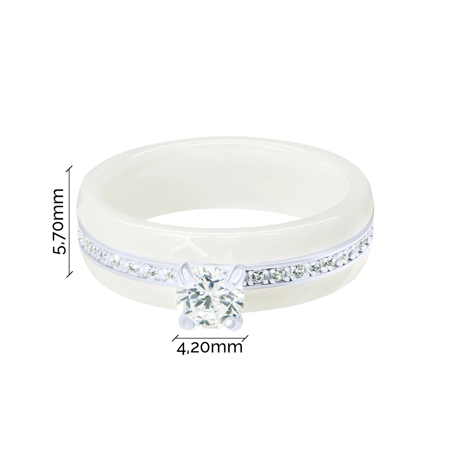 Элегантное раздвижное серебряное кольцо в минималистичном стиле с фианитом - 1957214