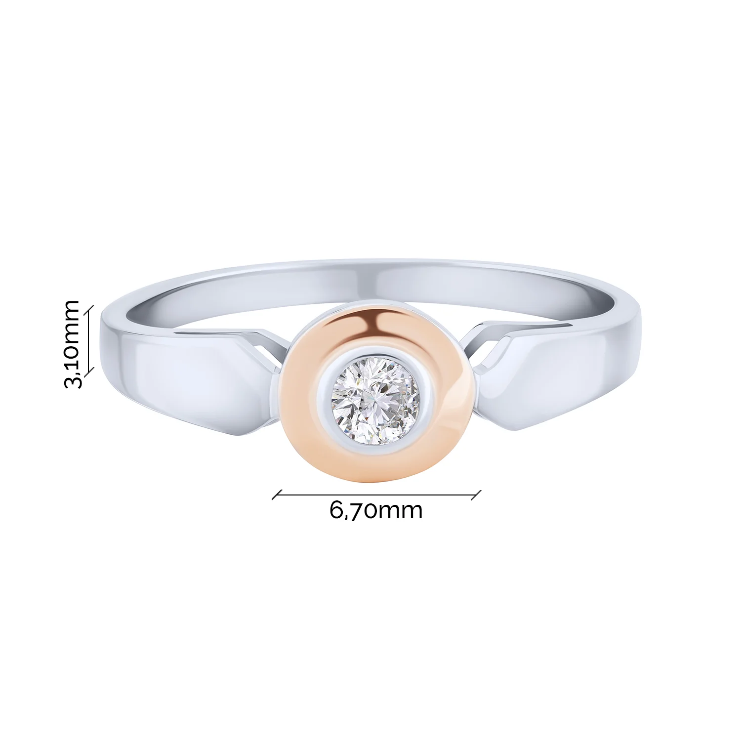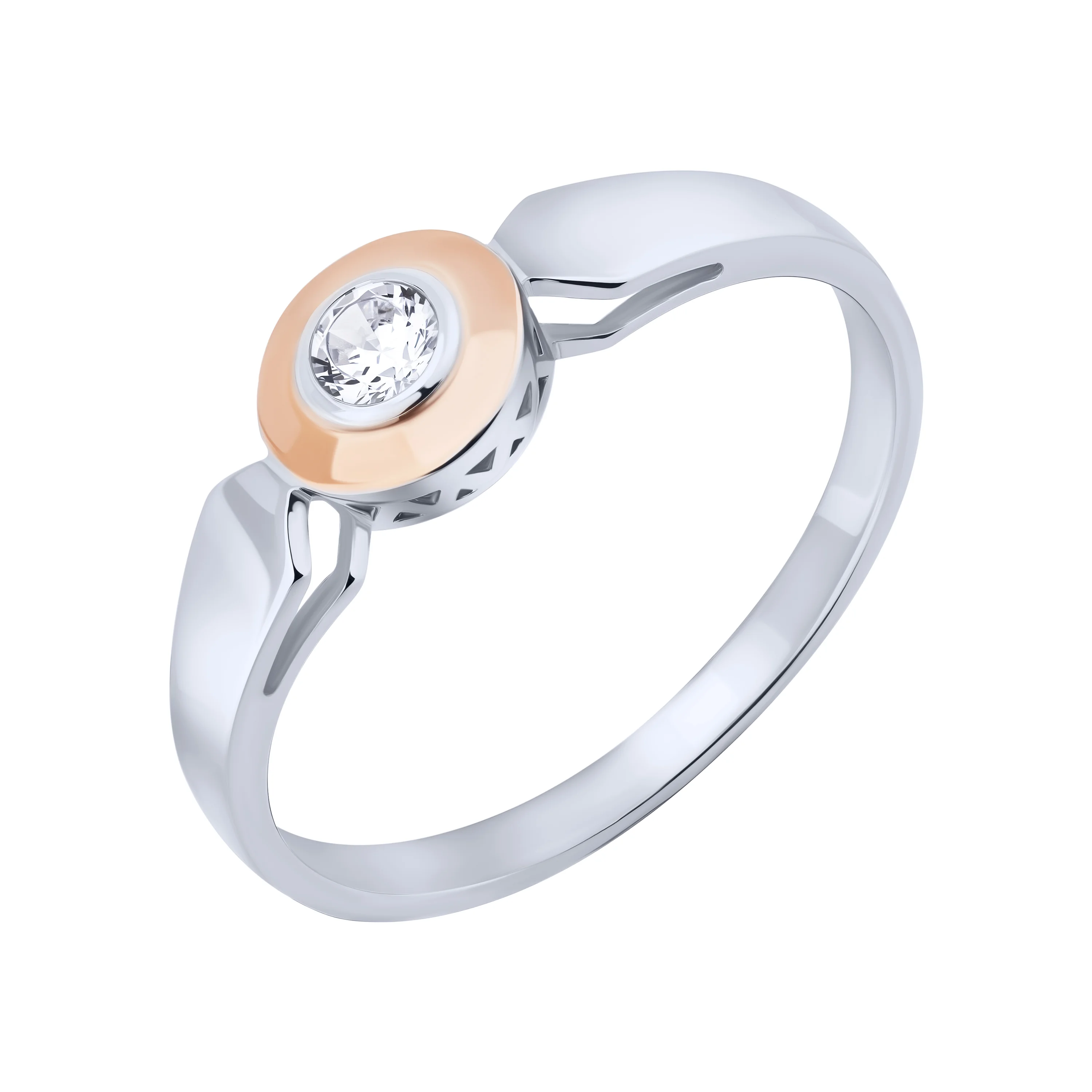 Кольцо из серебра с накладкой из красного золота с фианитом - 2122493