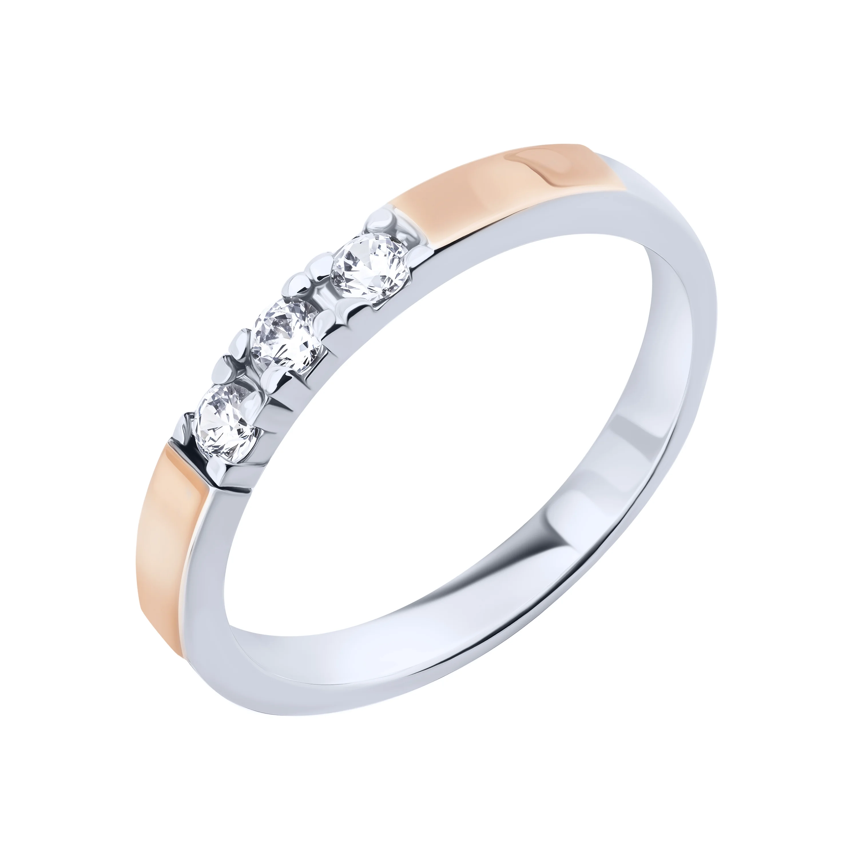 Кольцо из серебра с накладками из красного золота с фианитами - 2122544