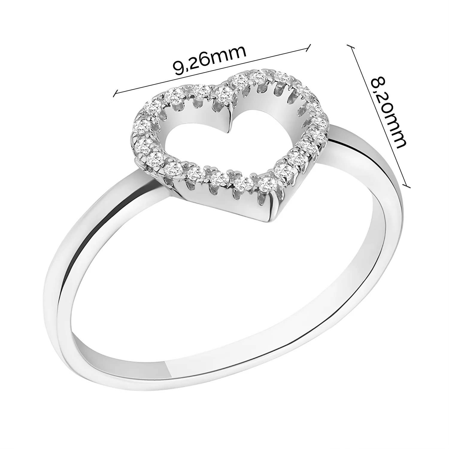 Кольцо из серебра "Сердечко" с фианитами - 1534347