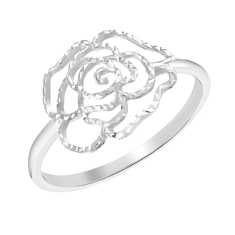 Кольцо из серебра "Цветок" с алмазной гранью - 1538820