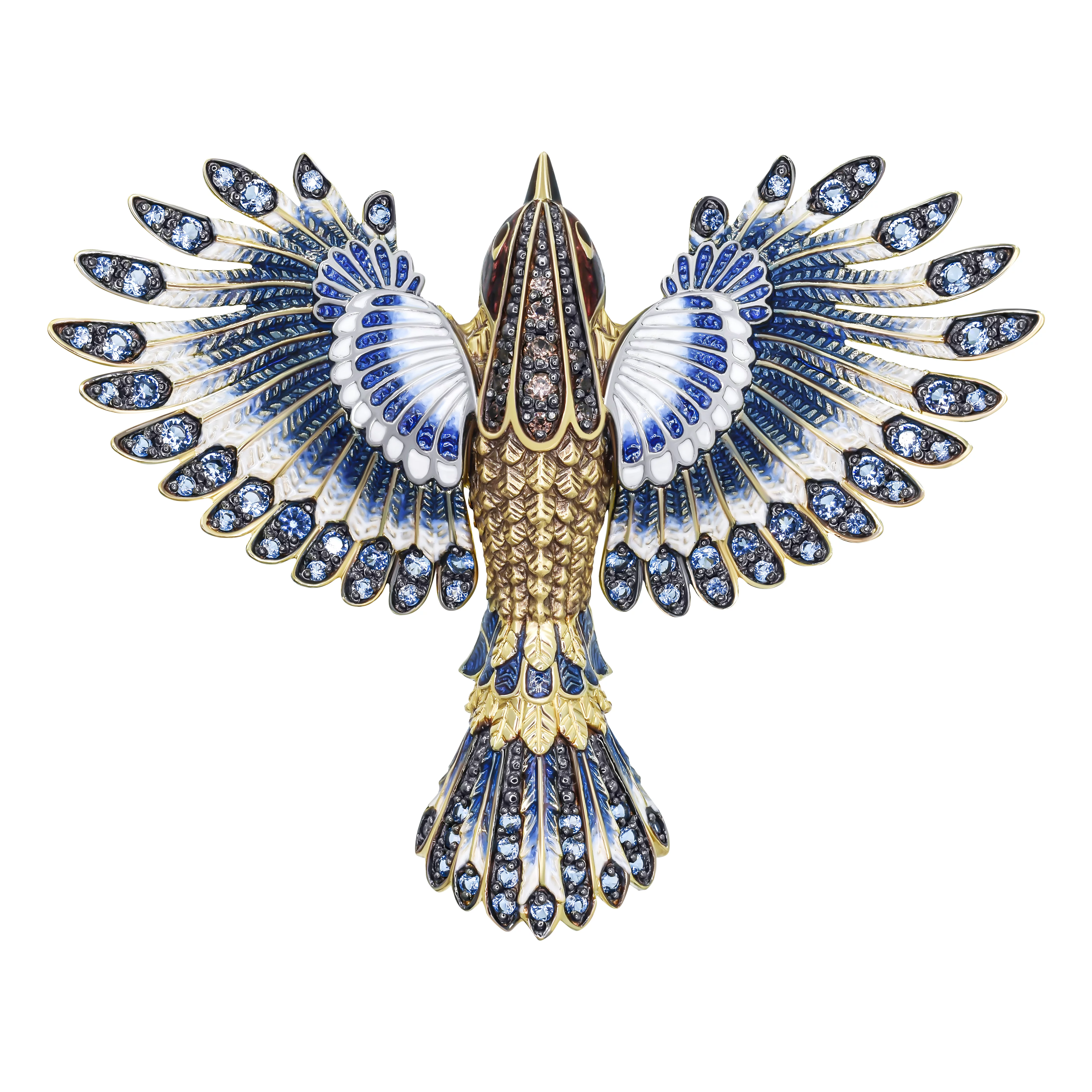Кольцо из желтого золота с эмалью и фианитом Сойка пересмешница - 947252
