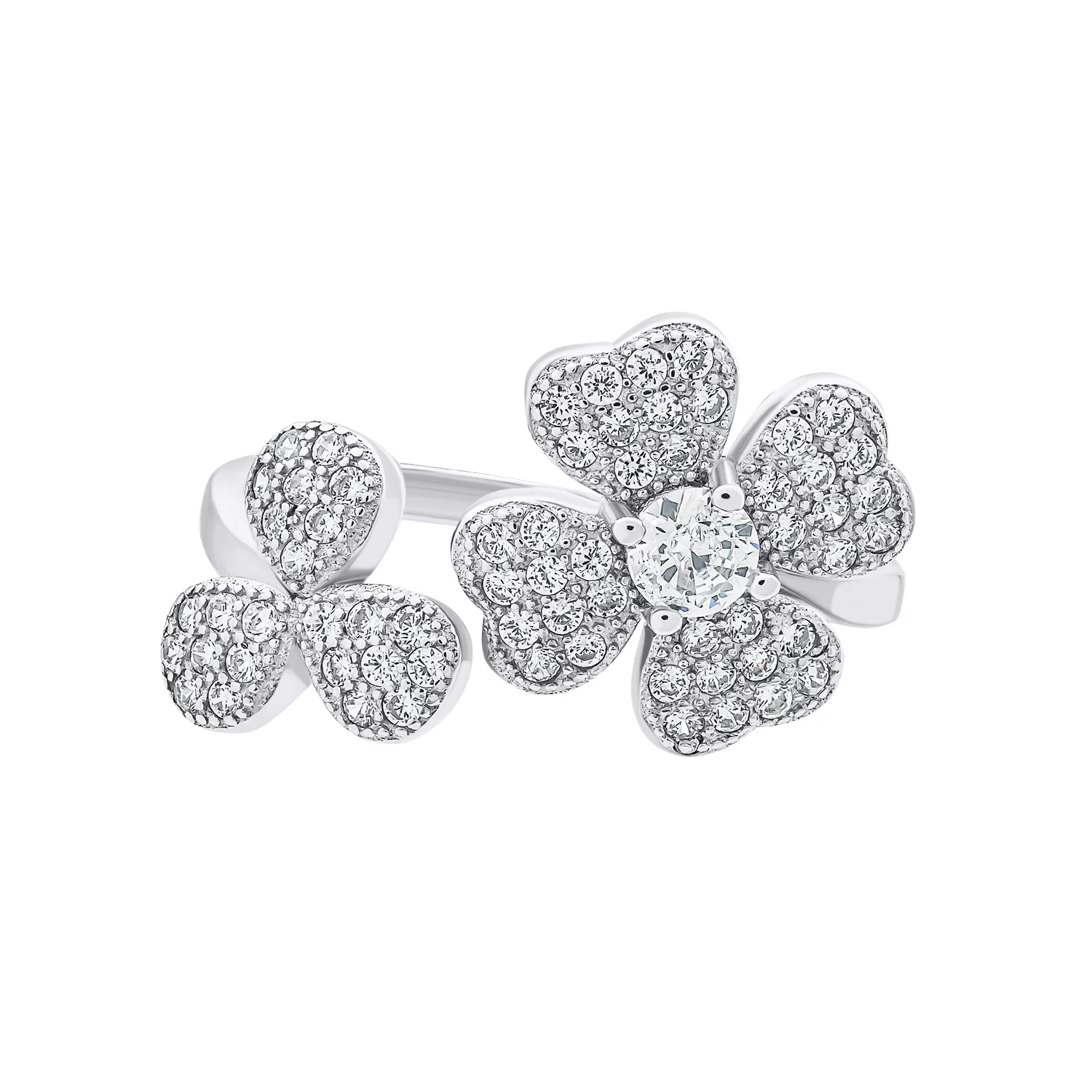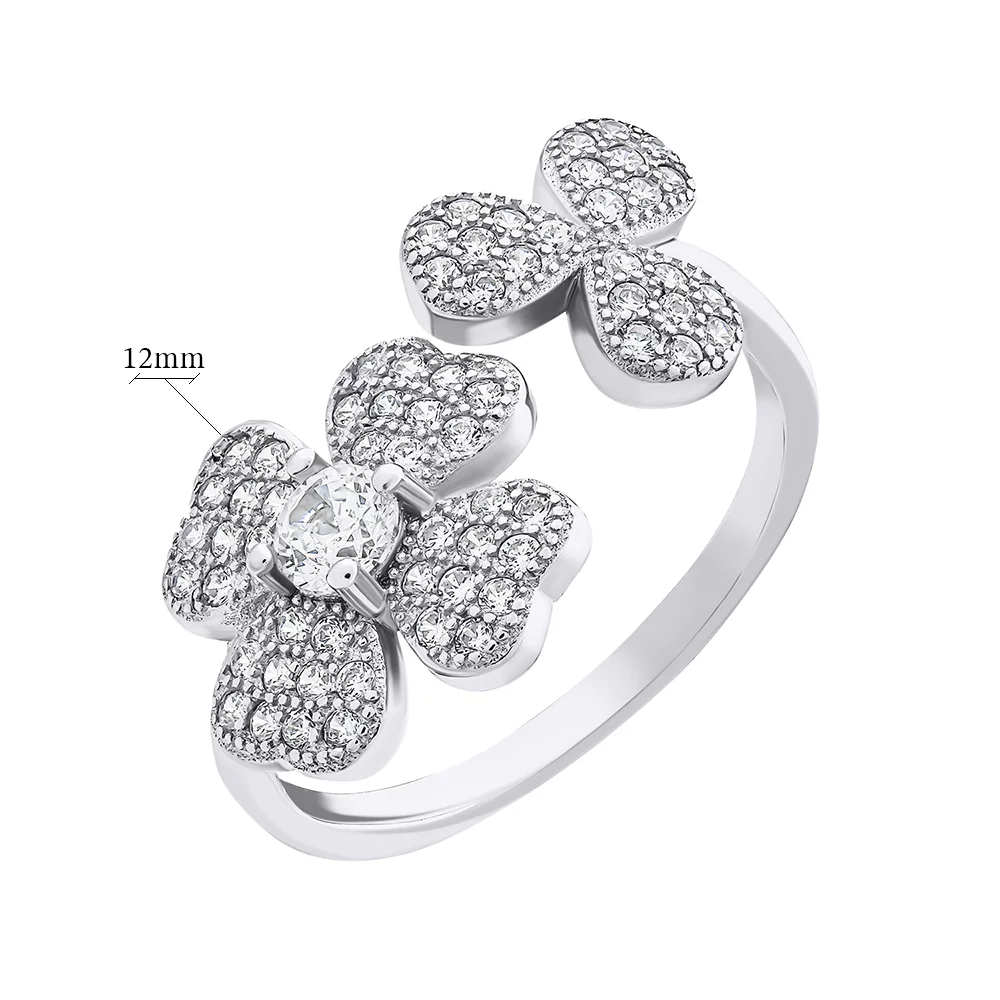 Кольцо незамкнутое "Клевер" из серебра с фианитами - 1488652