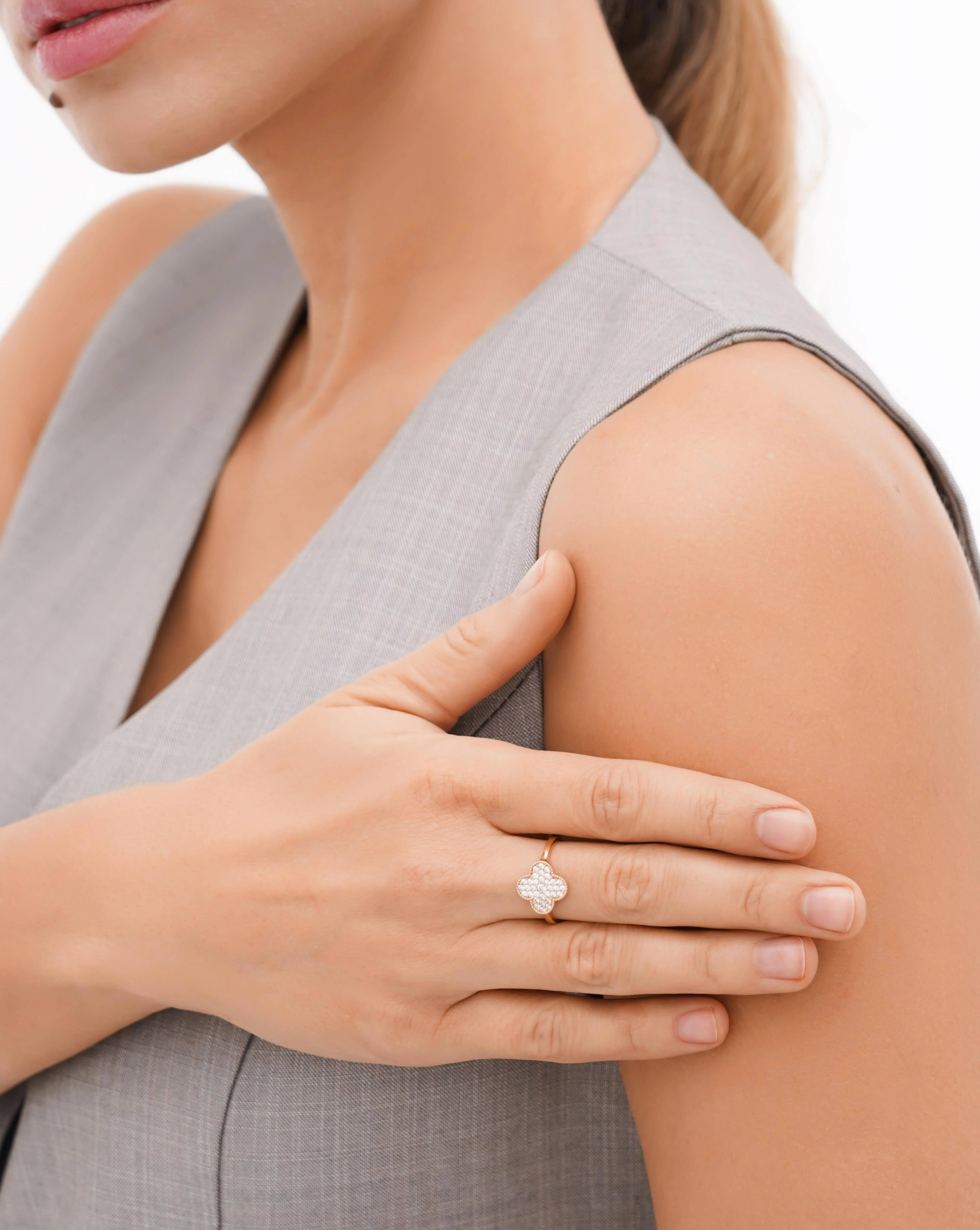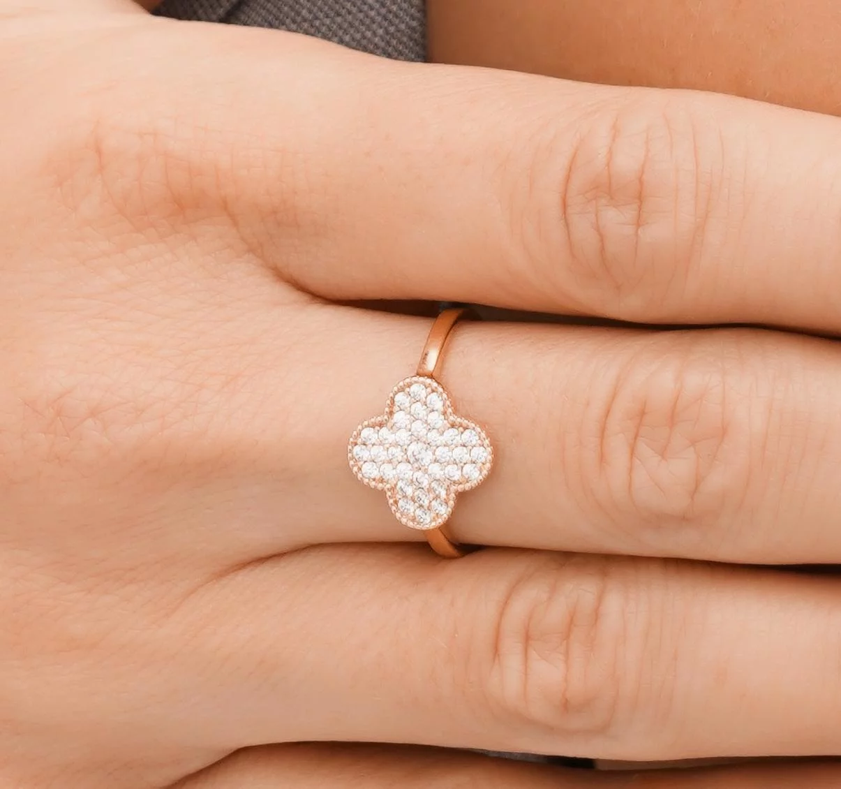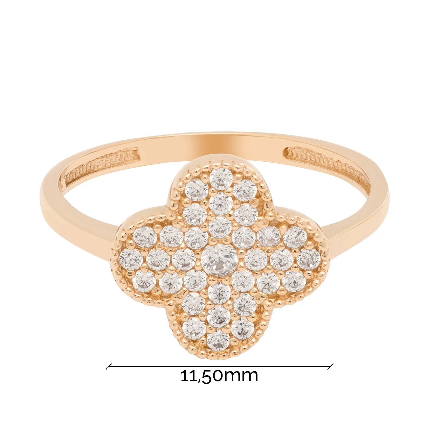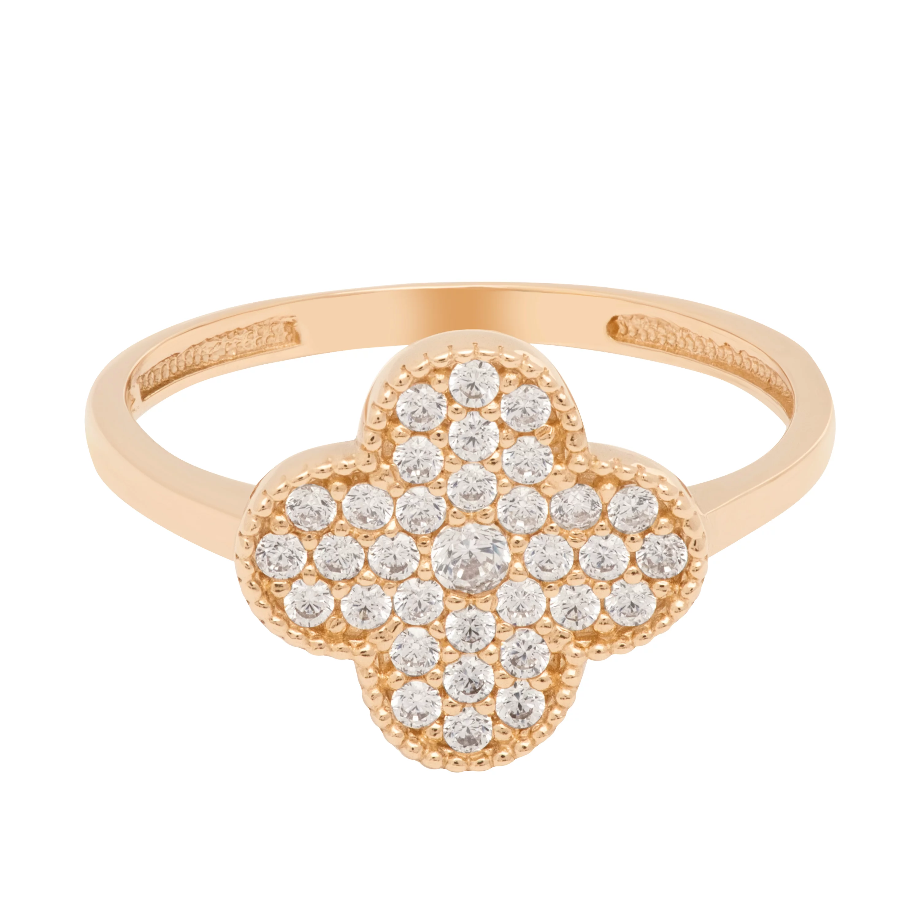 Кольцо "Клевер" с фианитами из красного золота - 1614517