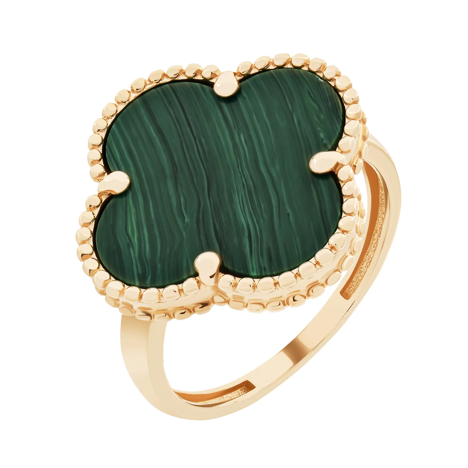 Кольцо "Клевер" с малахитом из красного золота - 1500269