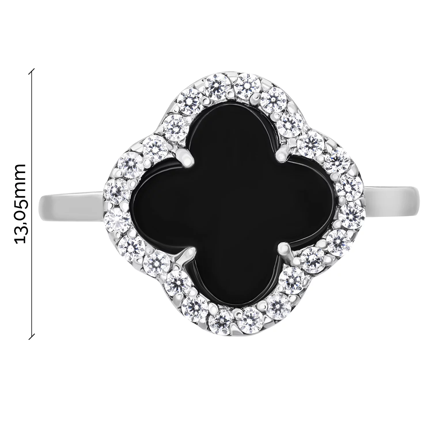 Кольцо "Клевер" серебряное с агатом - 1579411