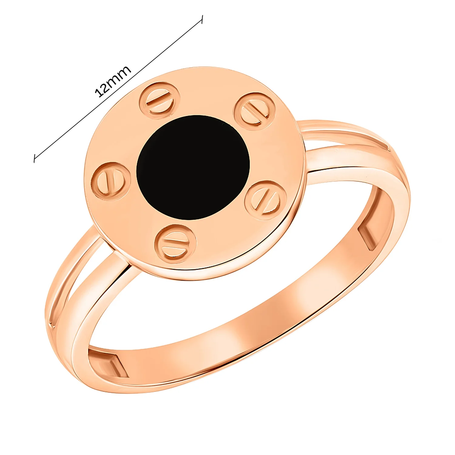 Стильное кольцо в форме круга из красного золота с эмалью и фианитом - 1923460