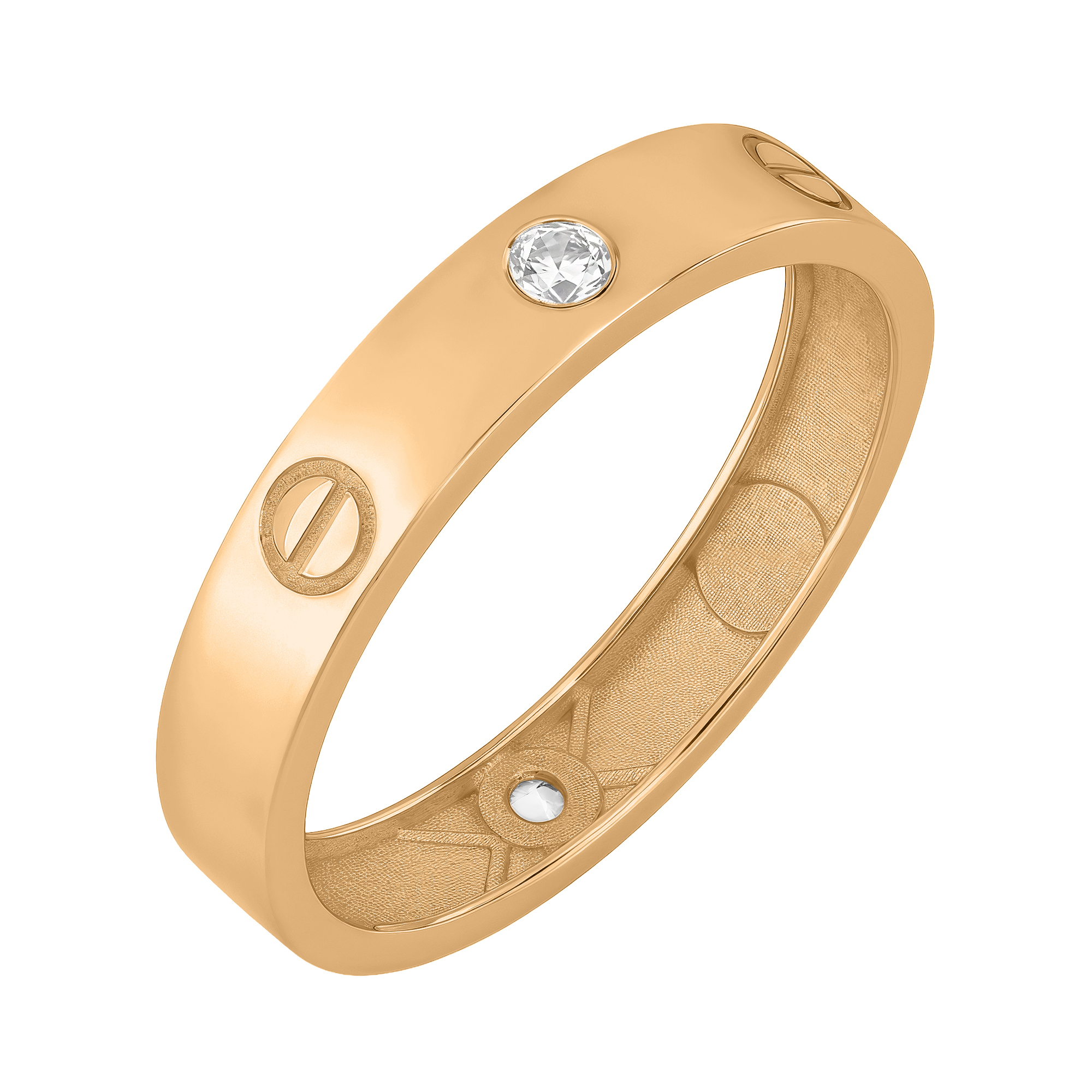 Кольцо "Love" в красном золоте с фианитами - 2139510