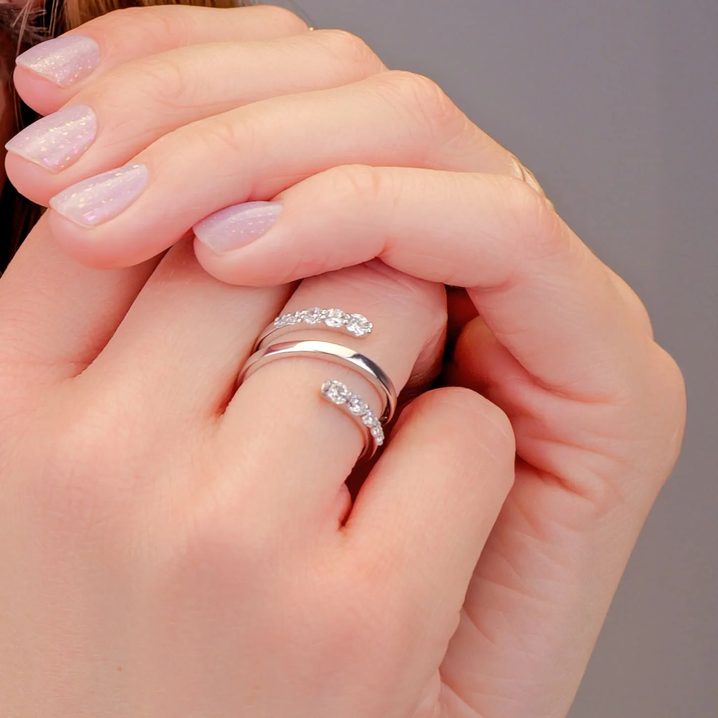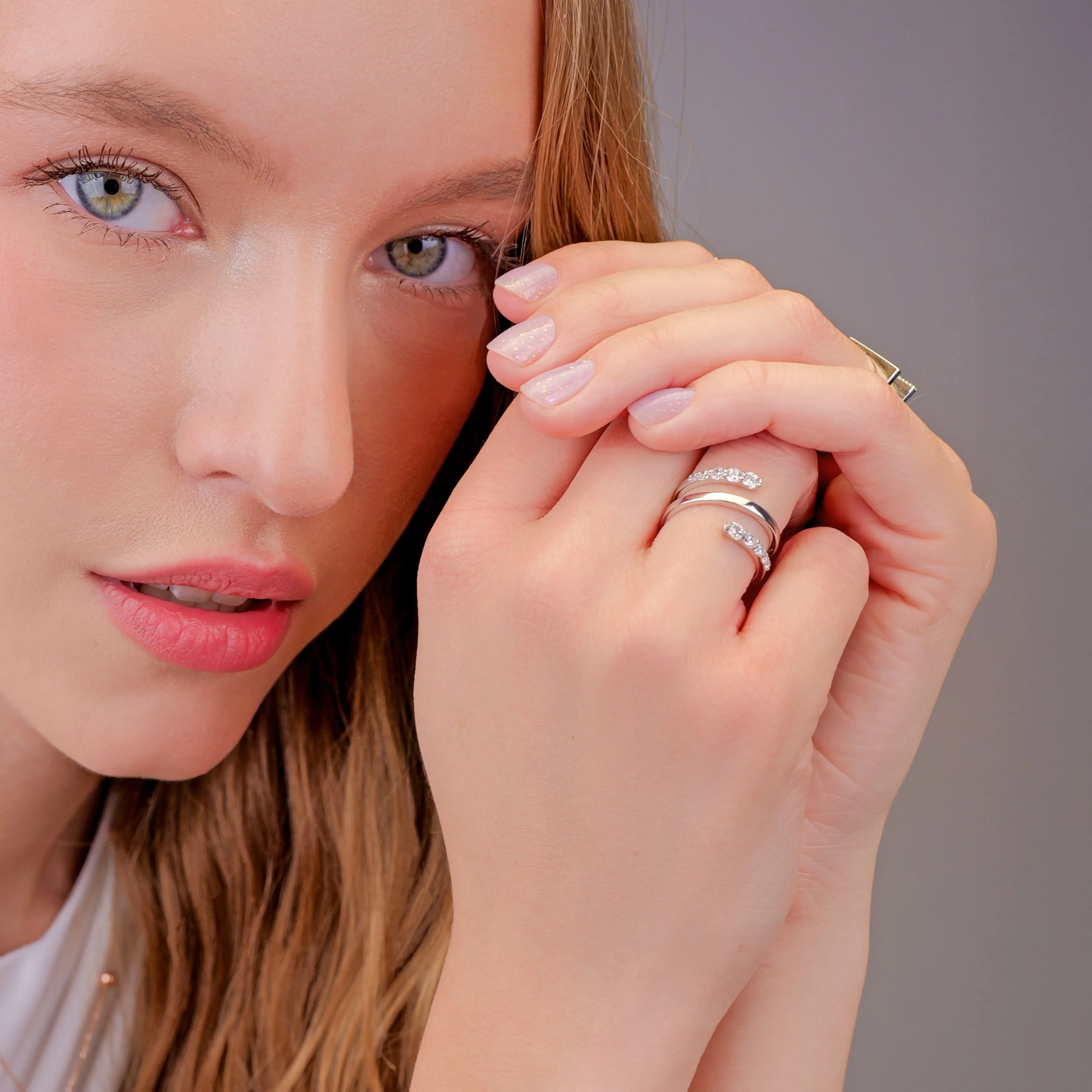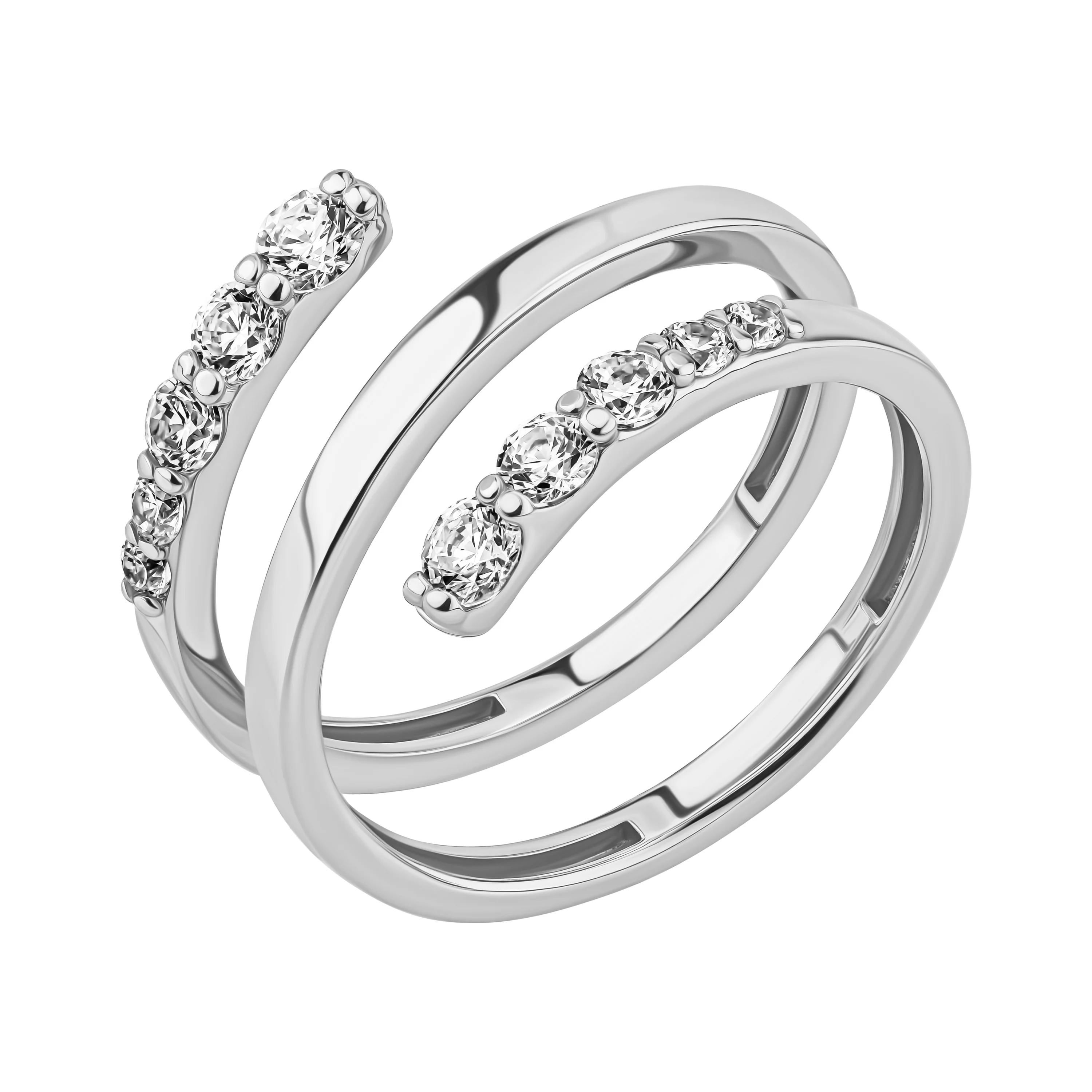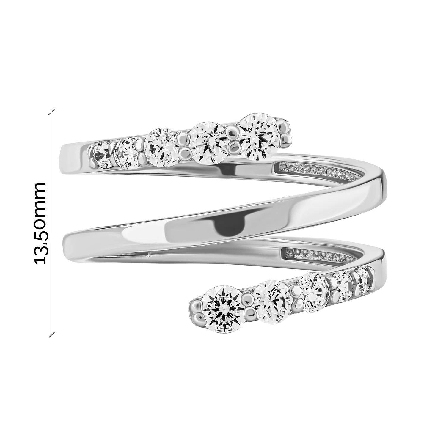 Кольцо незамкнутое "Спираль" из белого золота с фианитами - 1919929