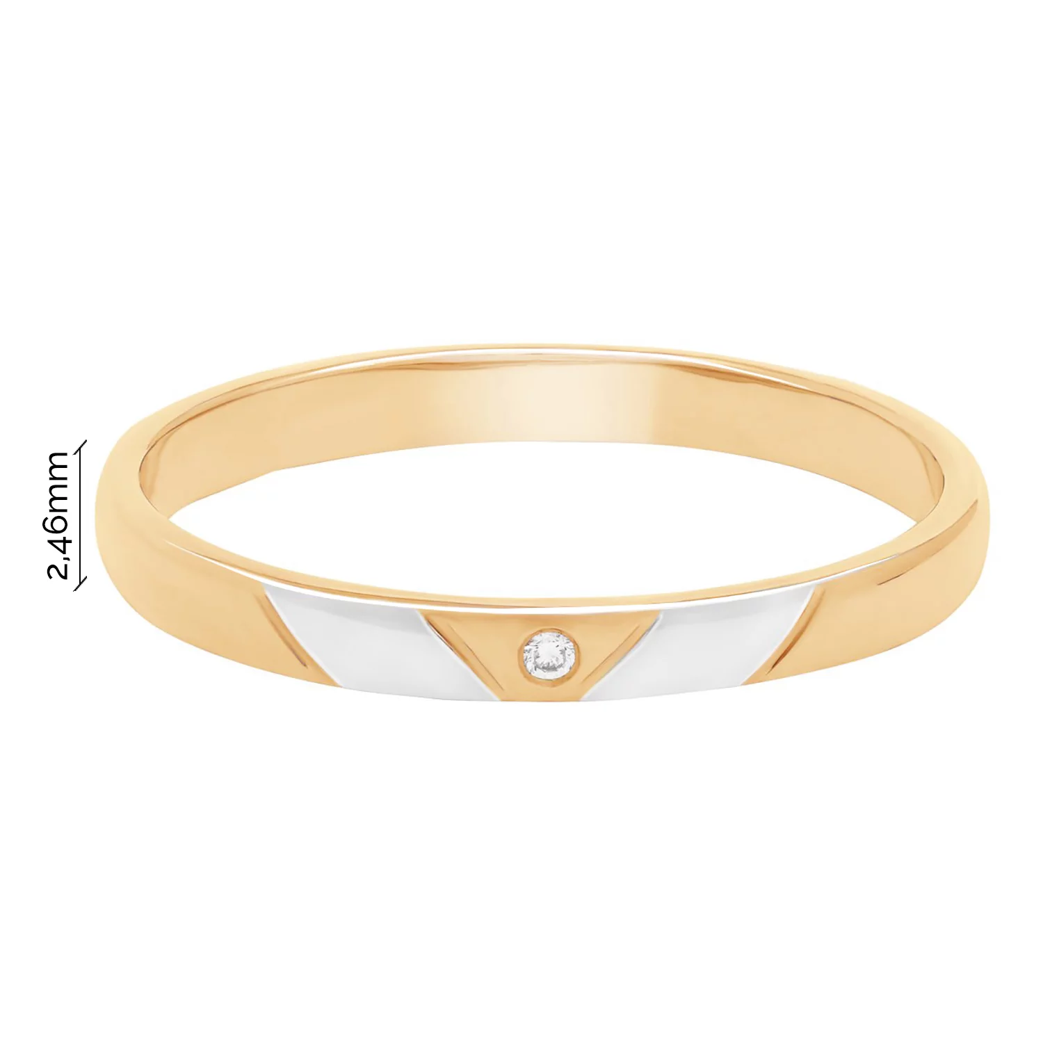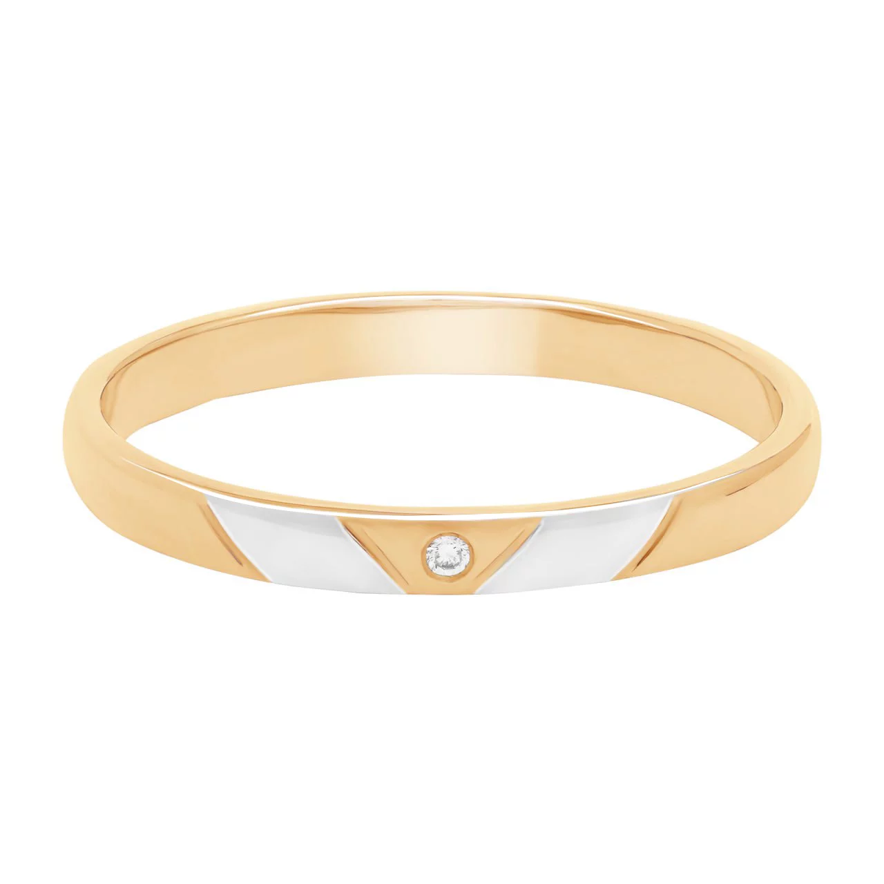 Кольцо в минималистичном стиле в комбинированном золоте с бриллиантом - 1875485
