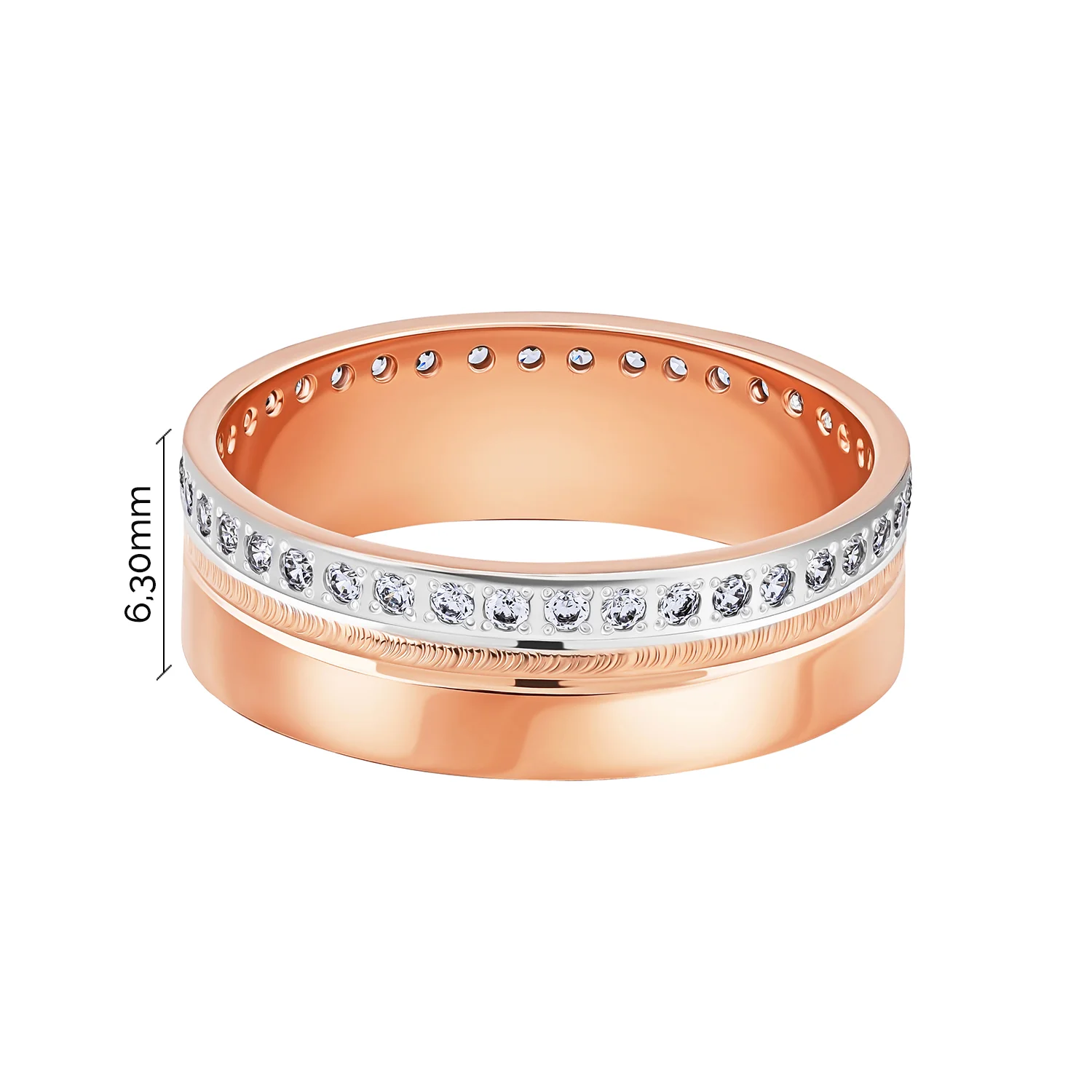 Кольцо обручальное из комбинированного золота с фианитами - 2071585