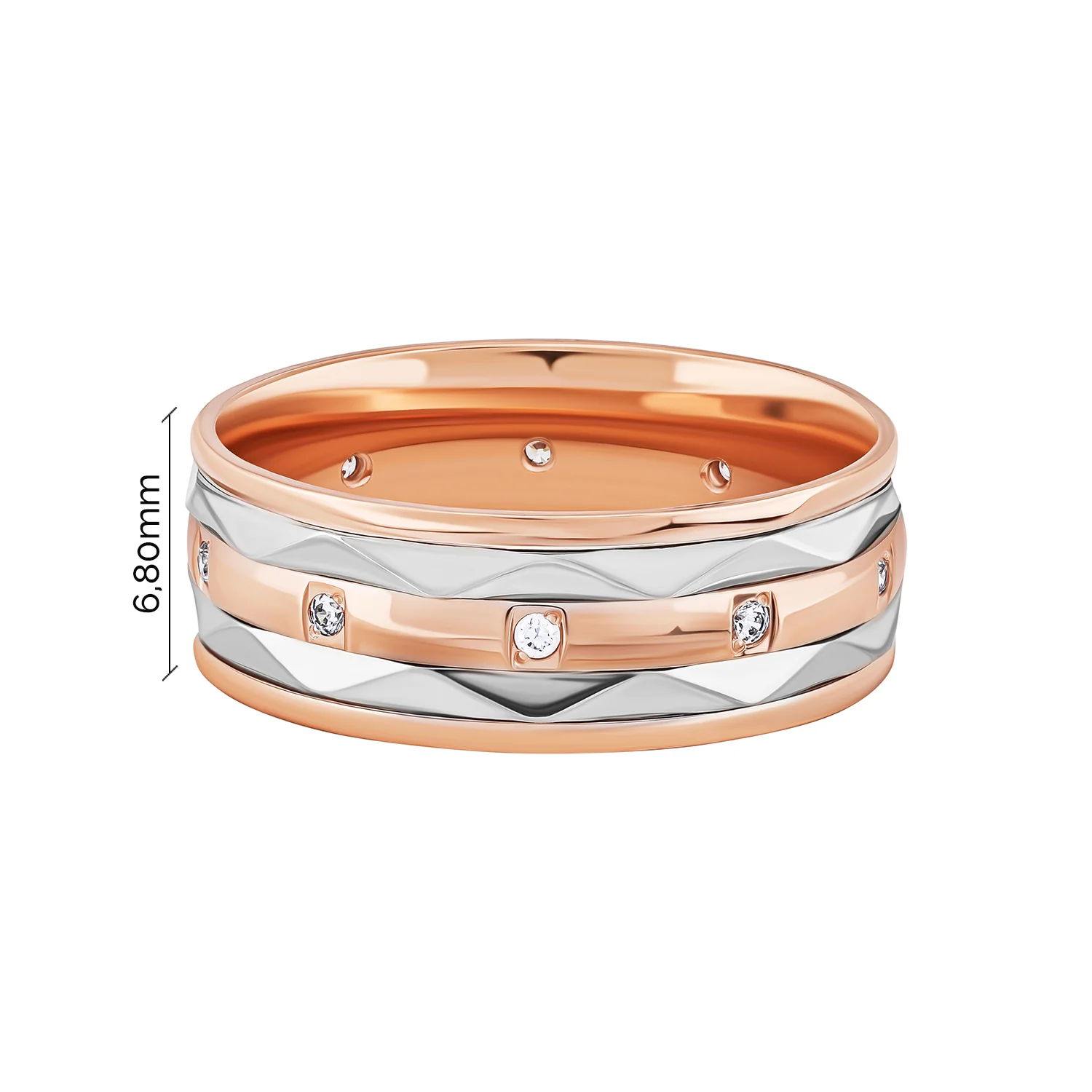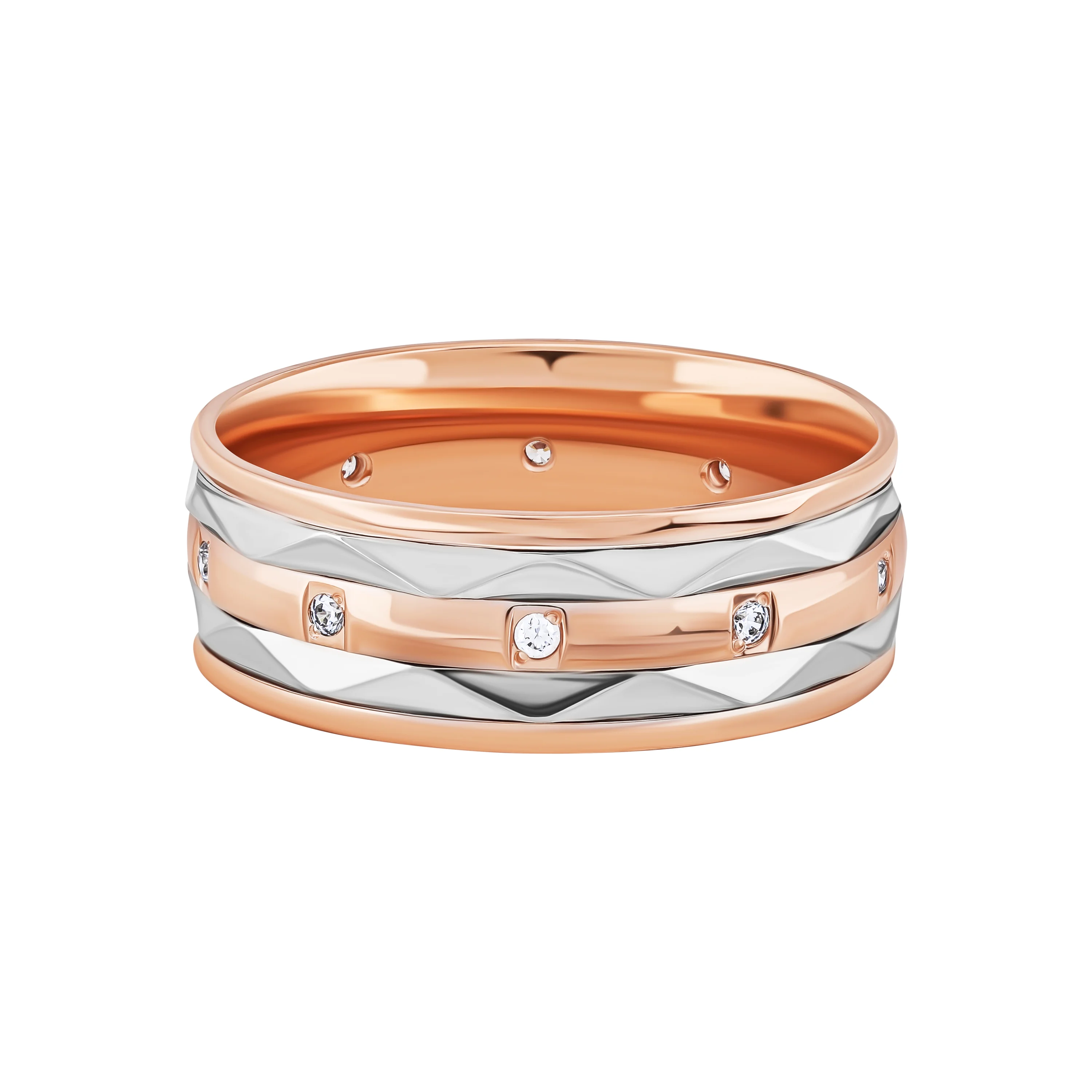 Кольцо обручальное с фианитами из комбинированного золота - 2071787