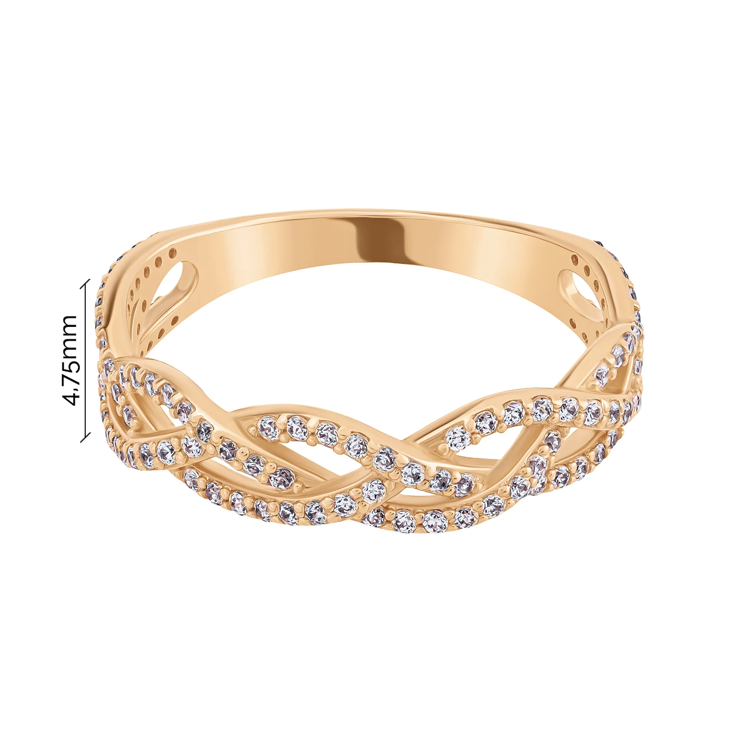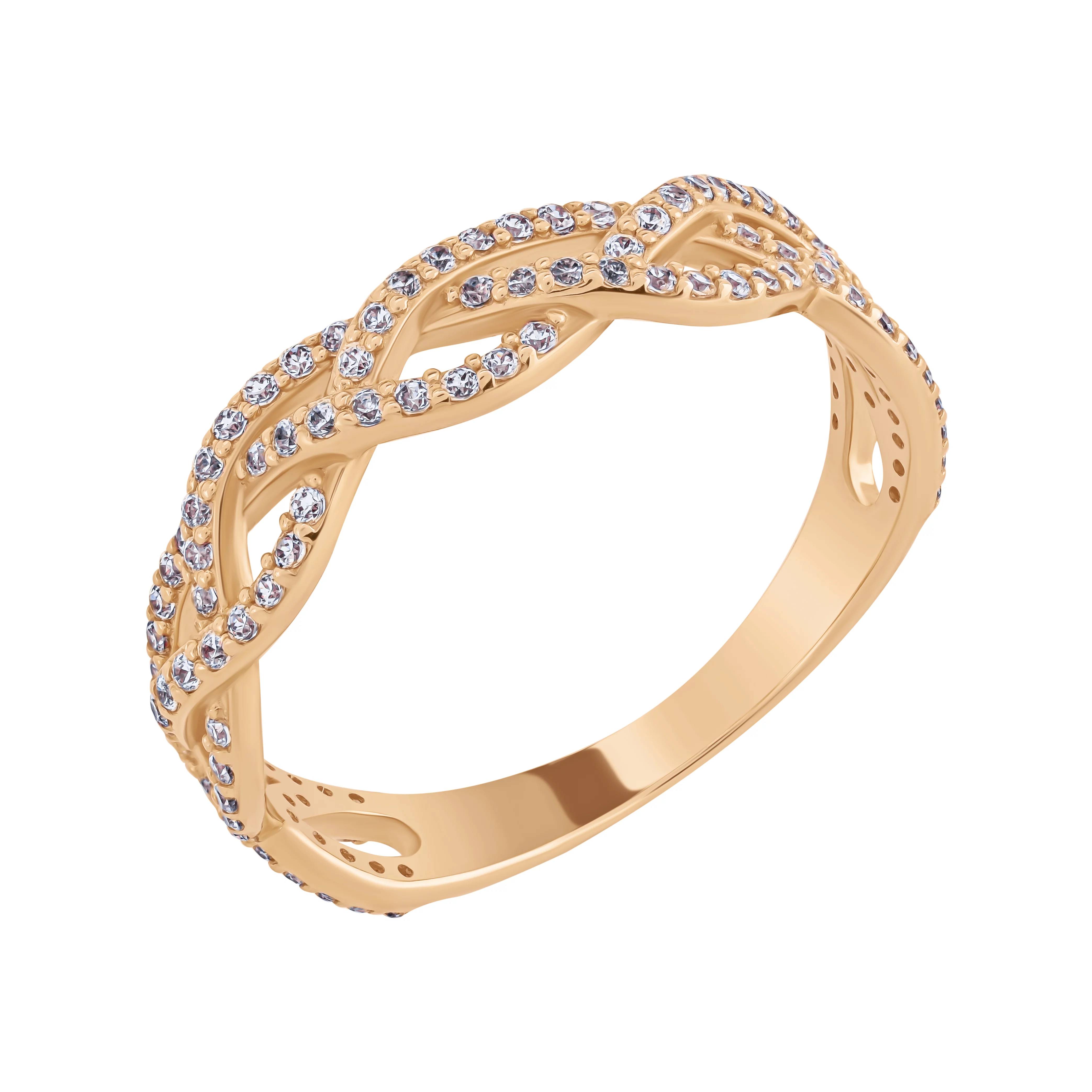 Кольцо широкое из красного золота "Переплетение" с фианитами - 1736137