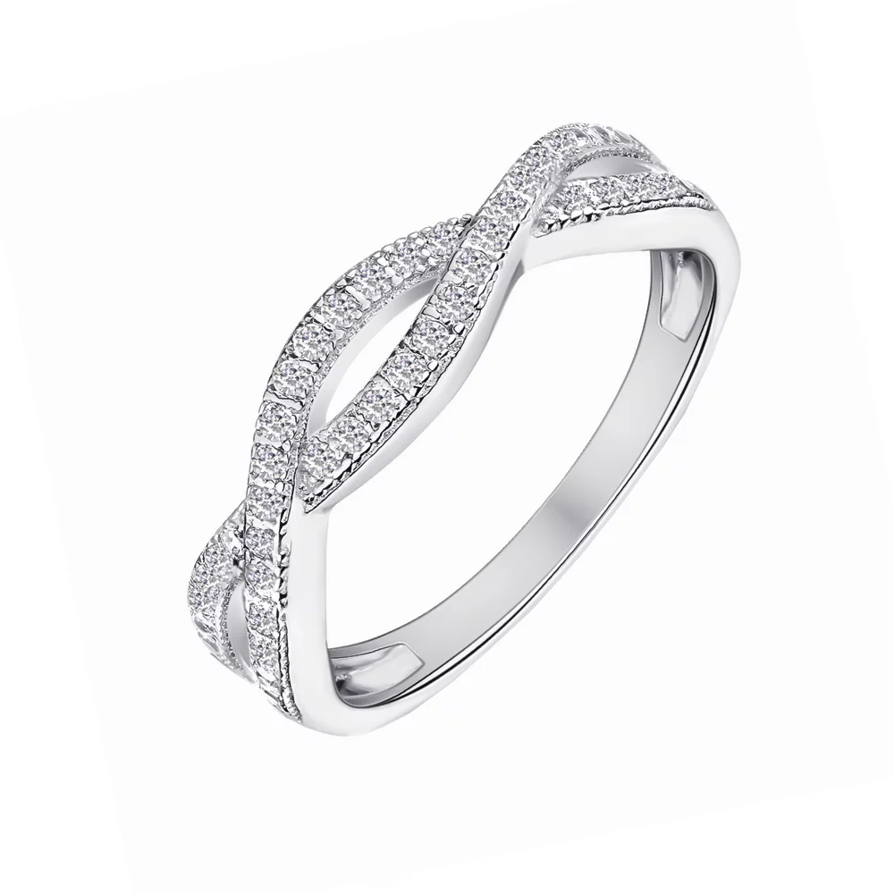 Кольцо "Переплетение" серебряное с фианитами - 1591939
