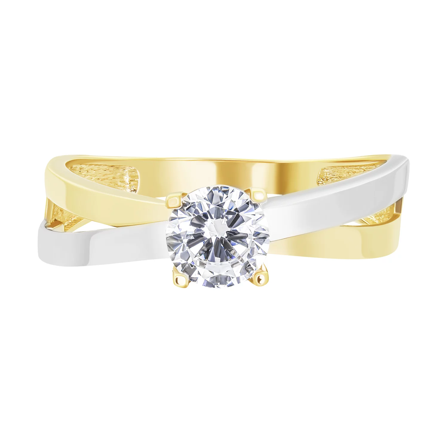 Кольцо из комбинированного золота в минималистичном стиле с фианитом - 1878027