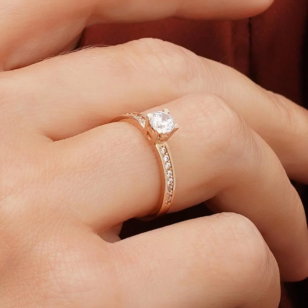 Кольцо в красном золоте с дорожкой фианитов - 1743095