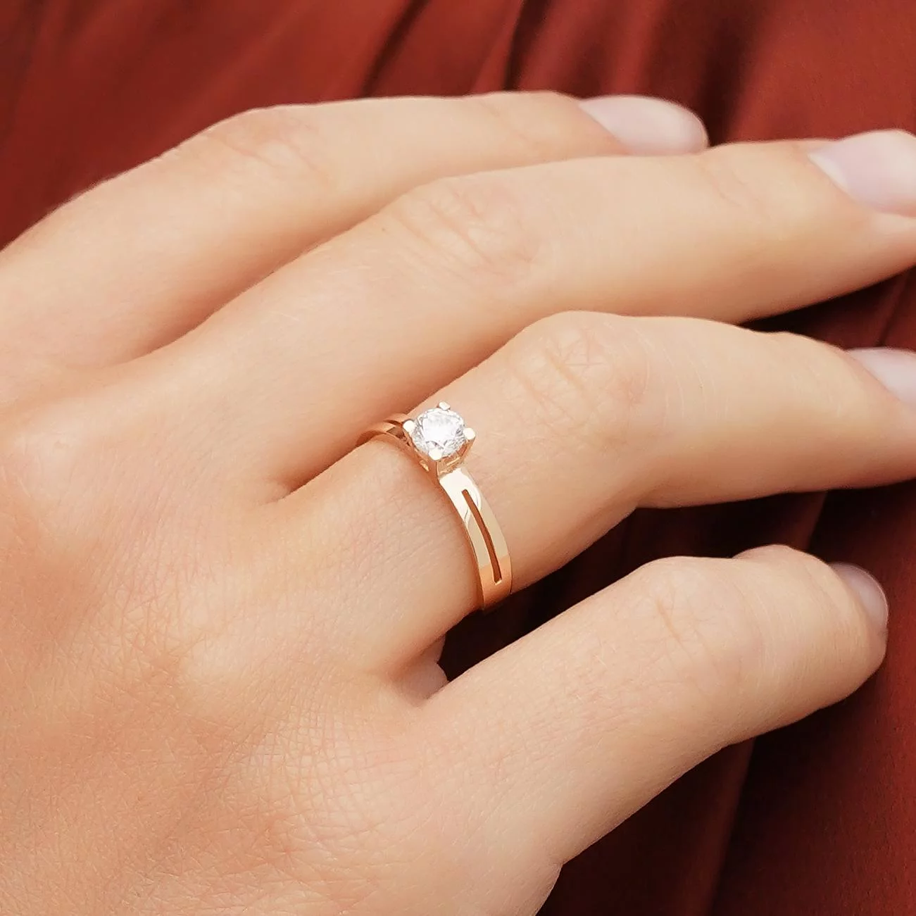 Кольцо в красном золоте с фианитом - 1743100