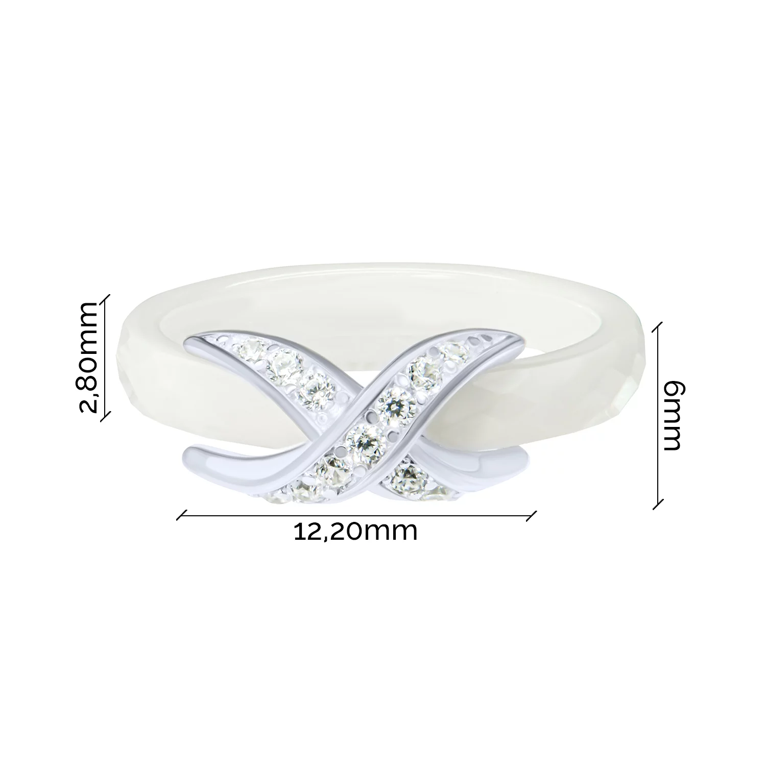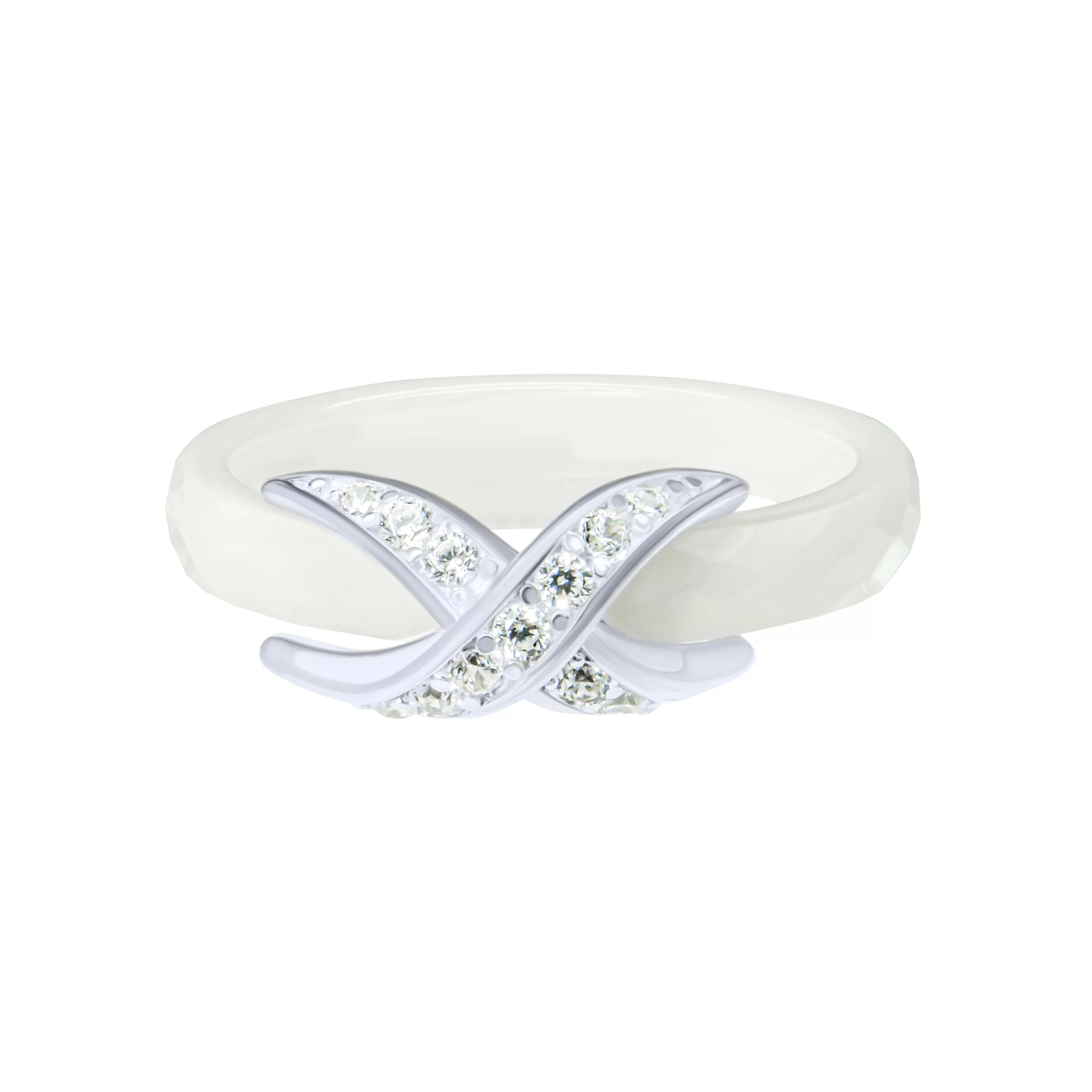 Кольцо с дорожкой фианитов и керамикой с гранями в серебре - 1815101