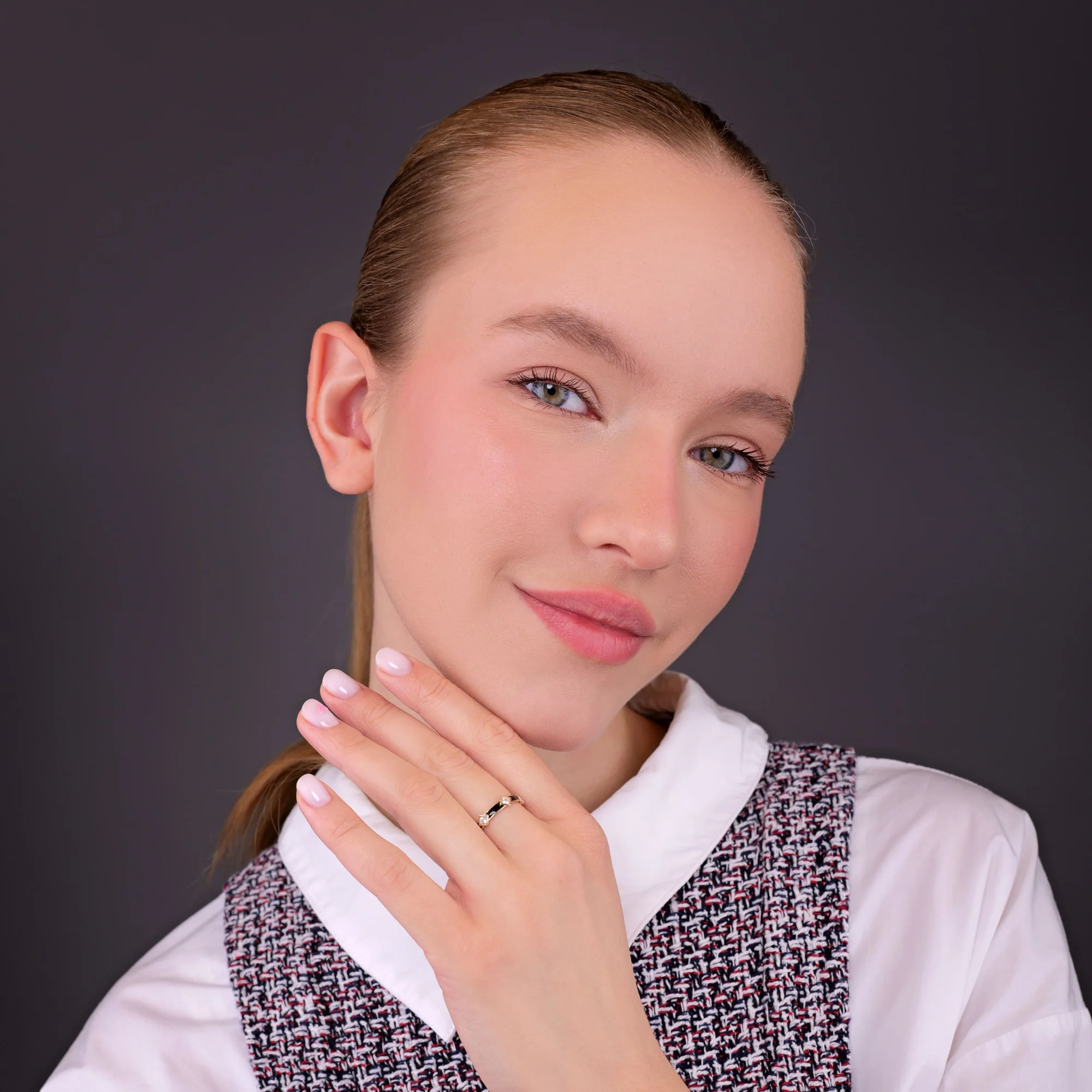 Кольцо с эмалью и фианитами в красном золоте - 1976779