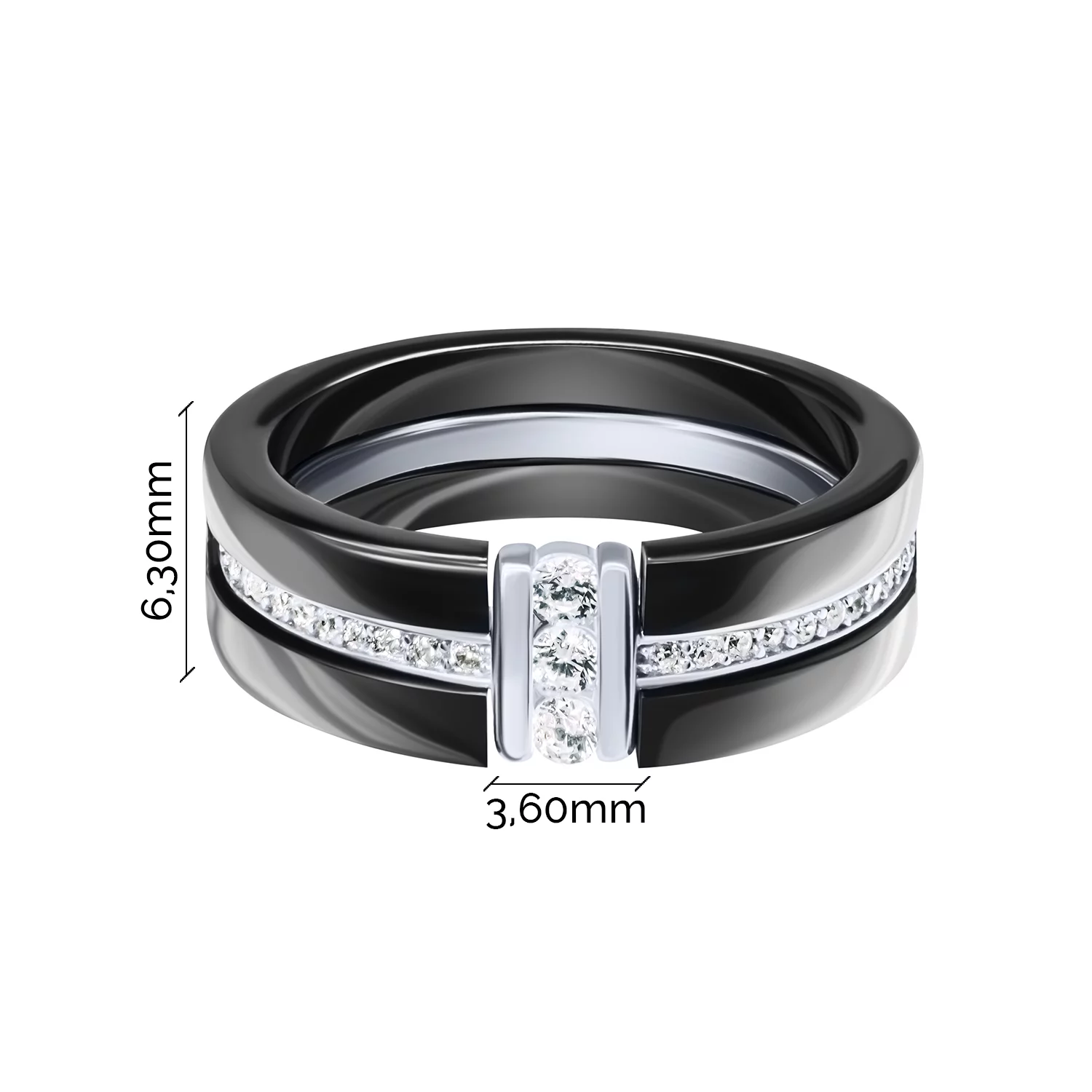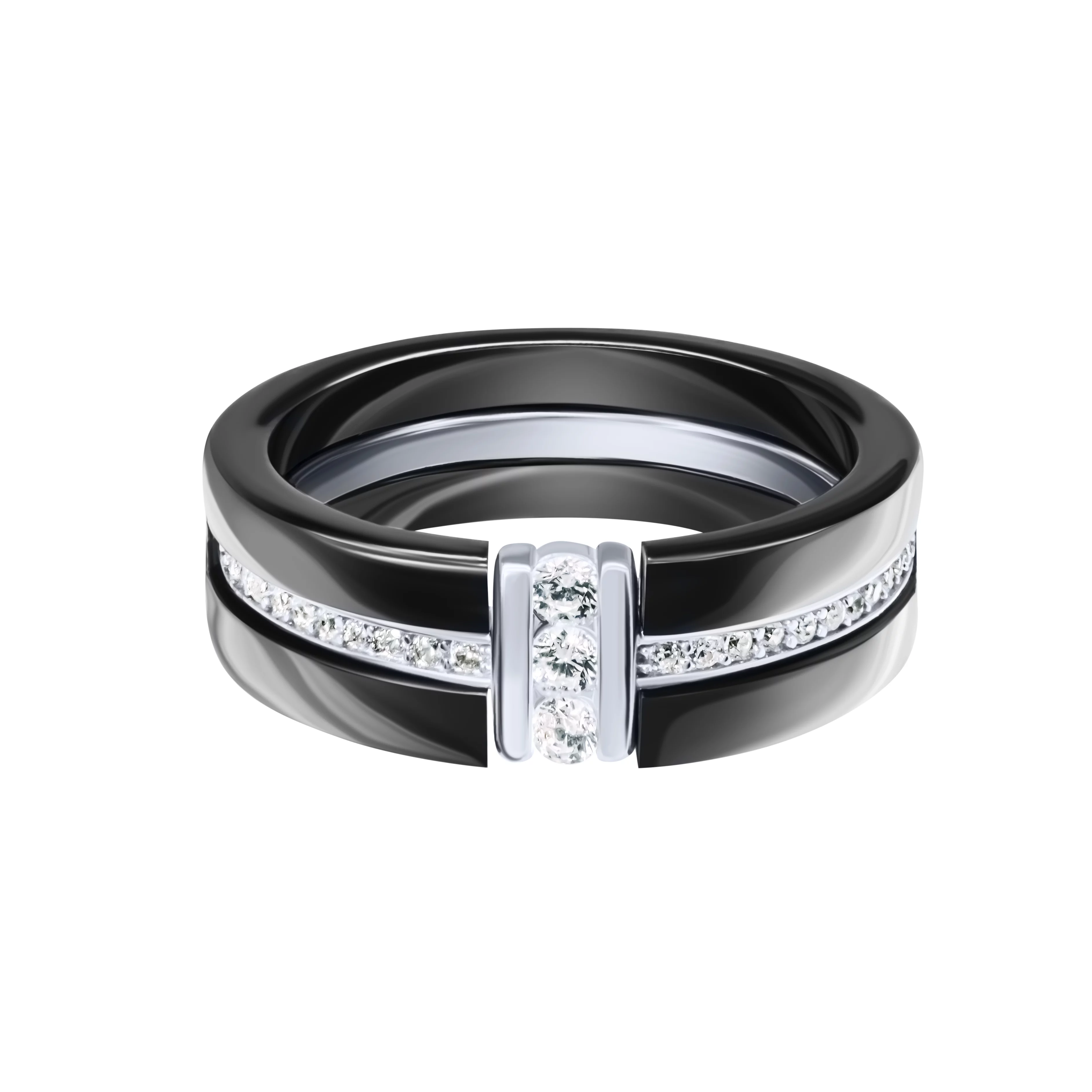 Двойное кольцо с фианитами в серебре с керамикой - 1815058