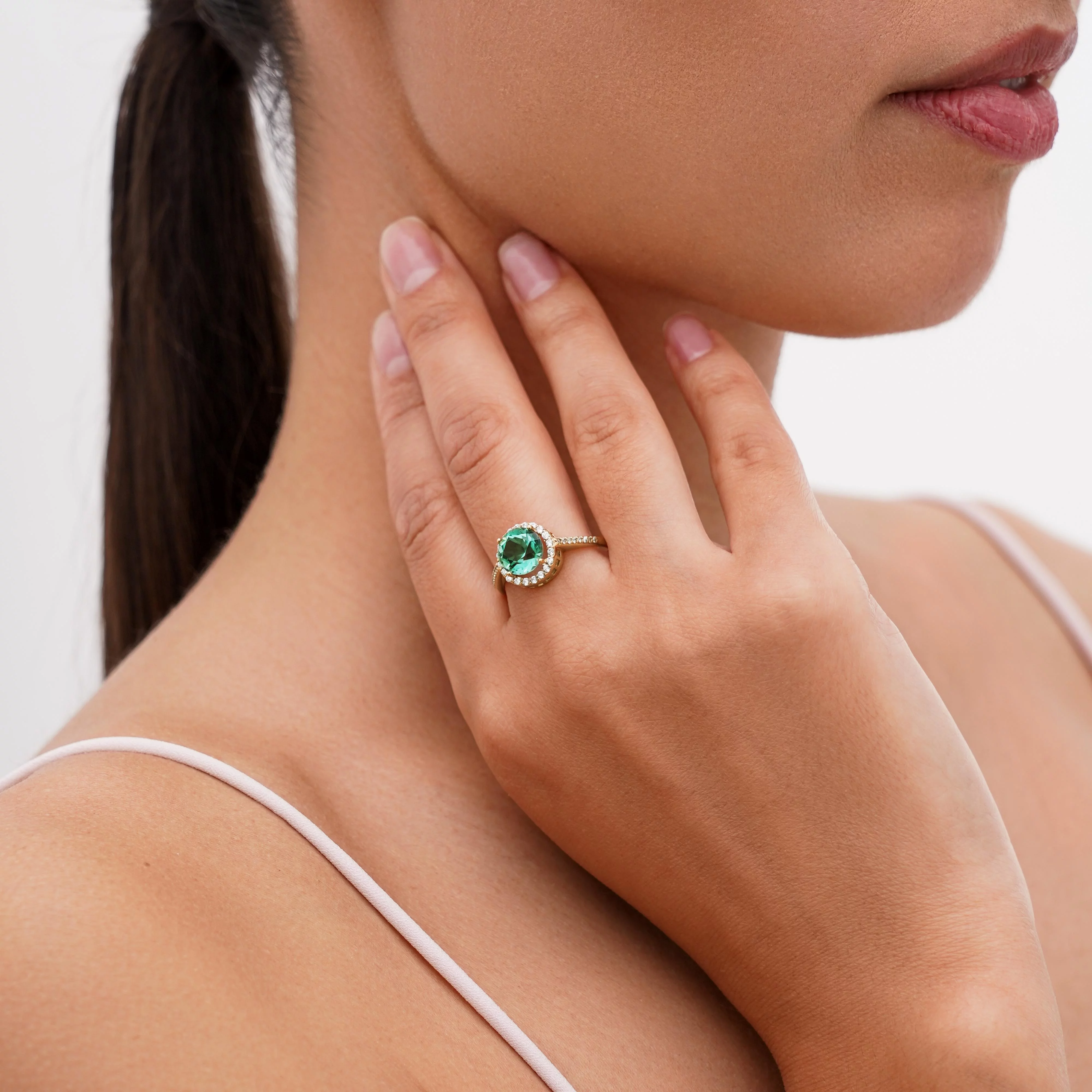 Кольцо с кварцем и фианитами из красного золота - 1559056