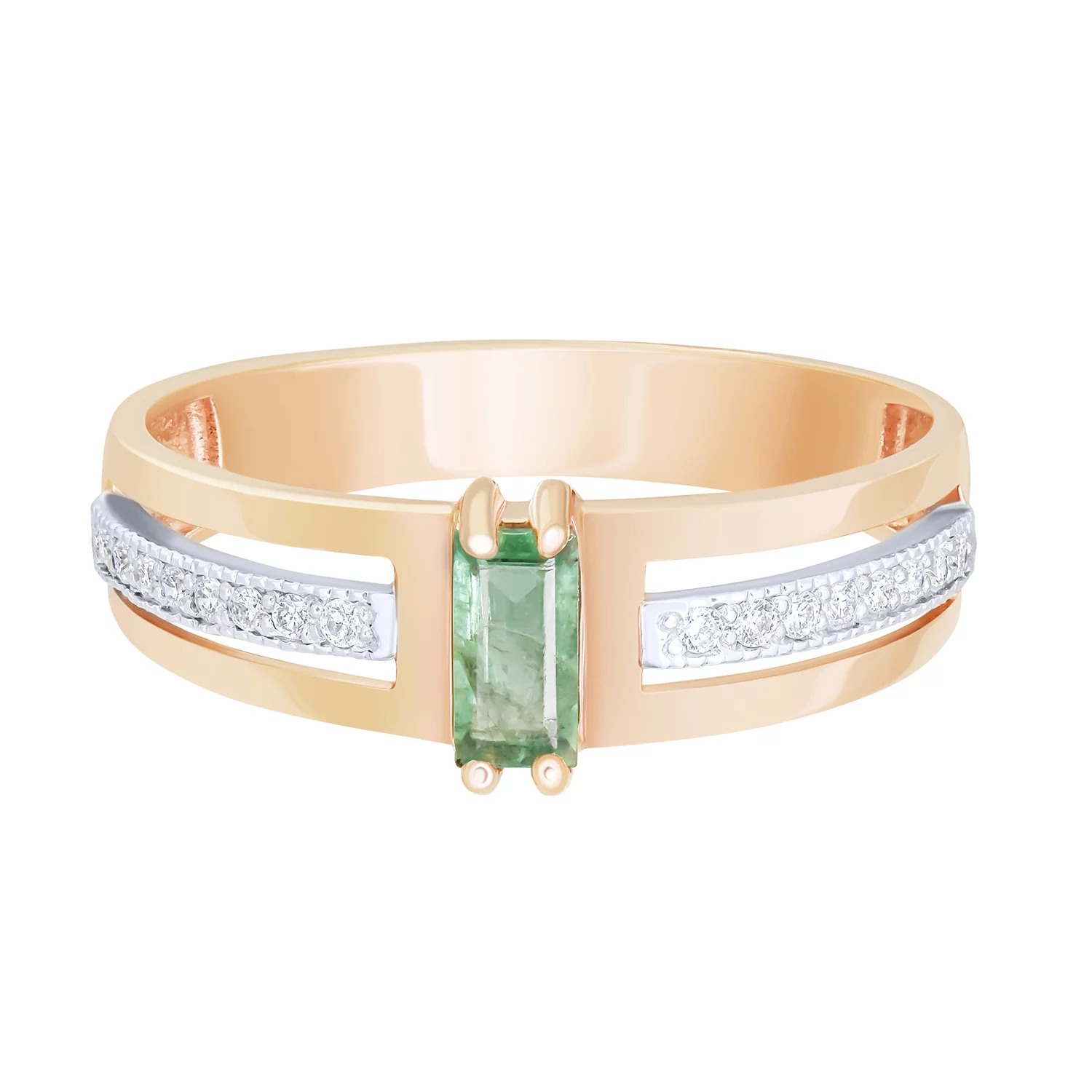 Стильное кольцо "Цветок" из красного золота с бриллиантами и изумрудом - 1871590