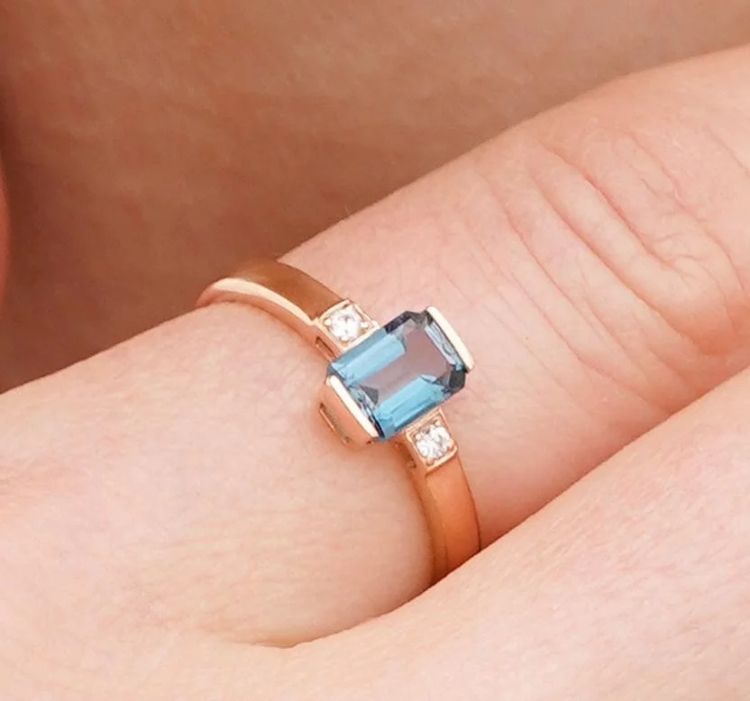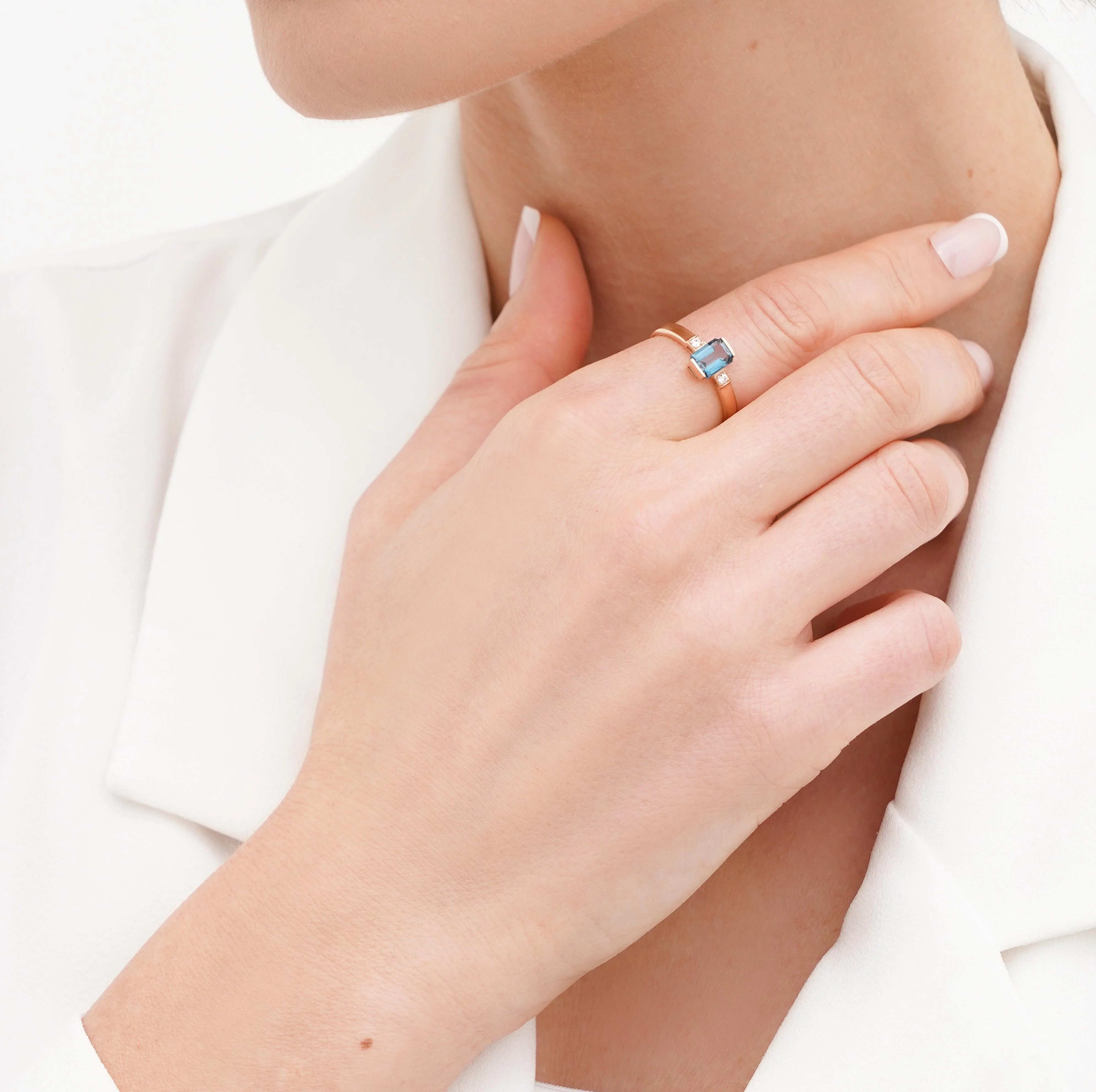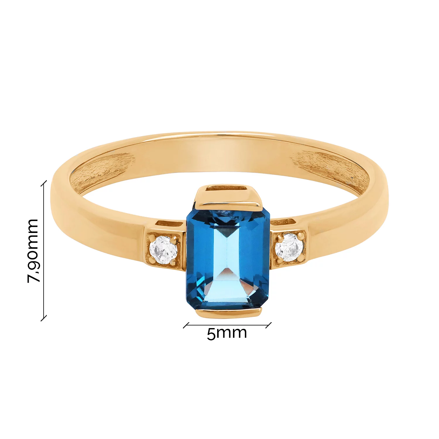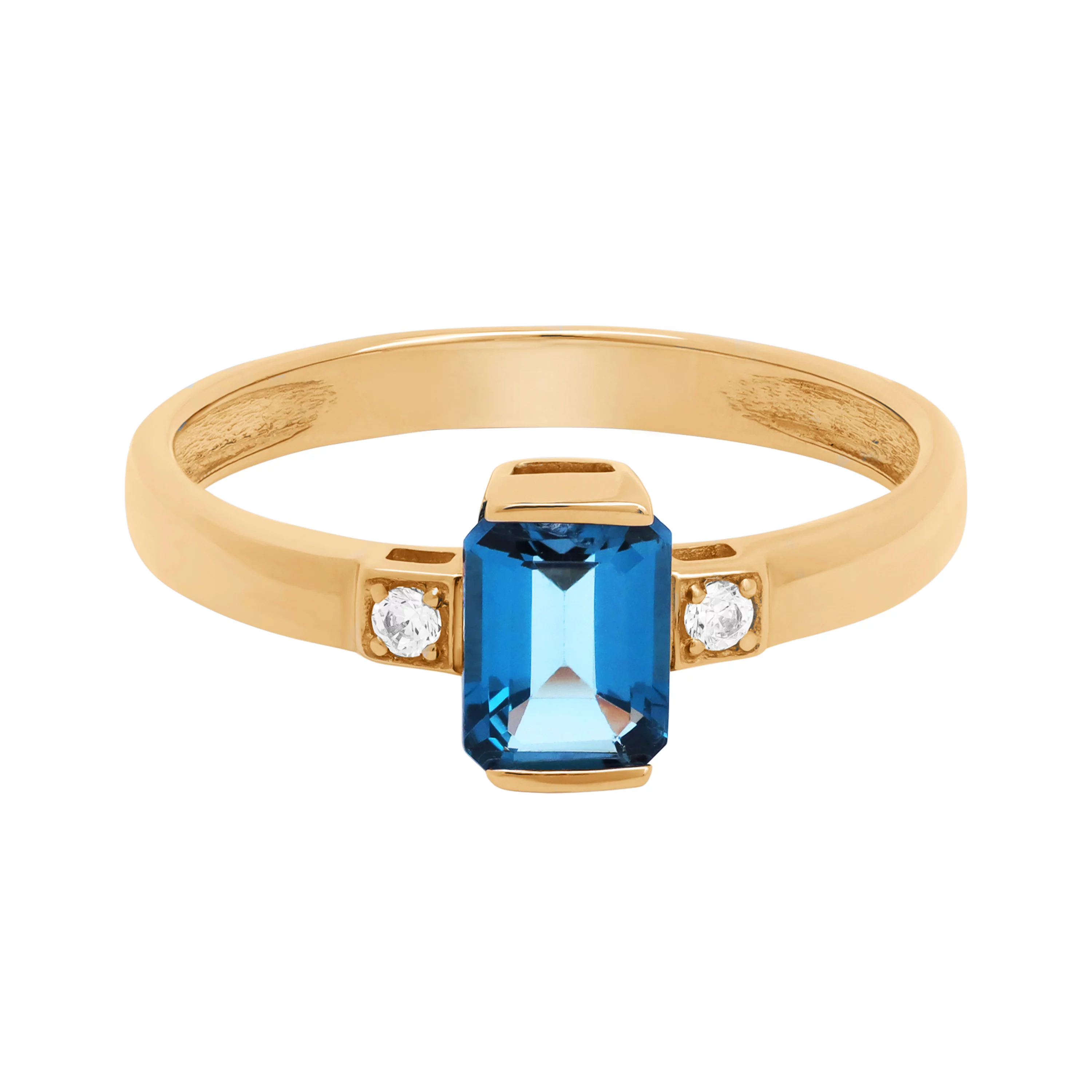 Стильное кольцо в геометричном стиле в красном золоте с топазом и фианитами - 1939740