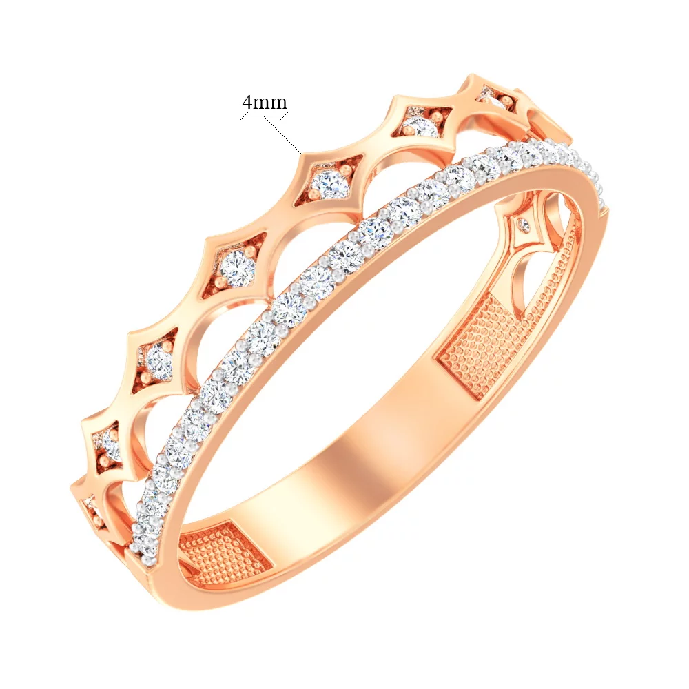 Кольцо с фианитами "Геометрия" из красного золота - 1450762