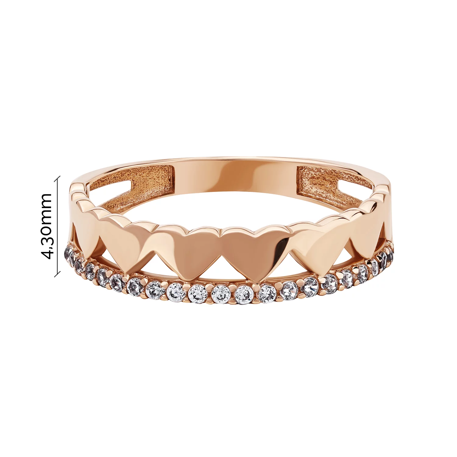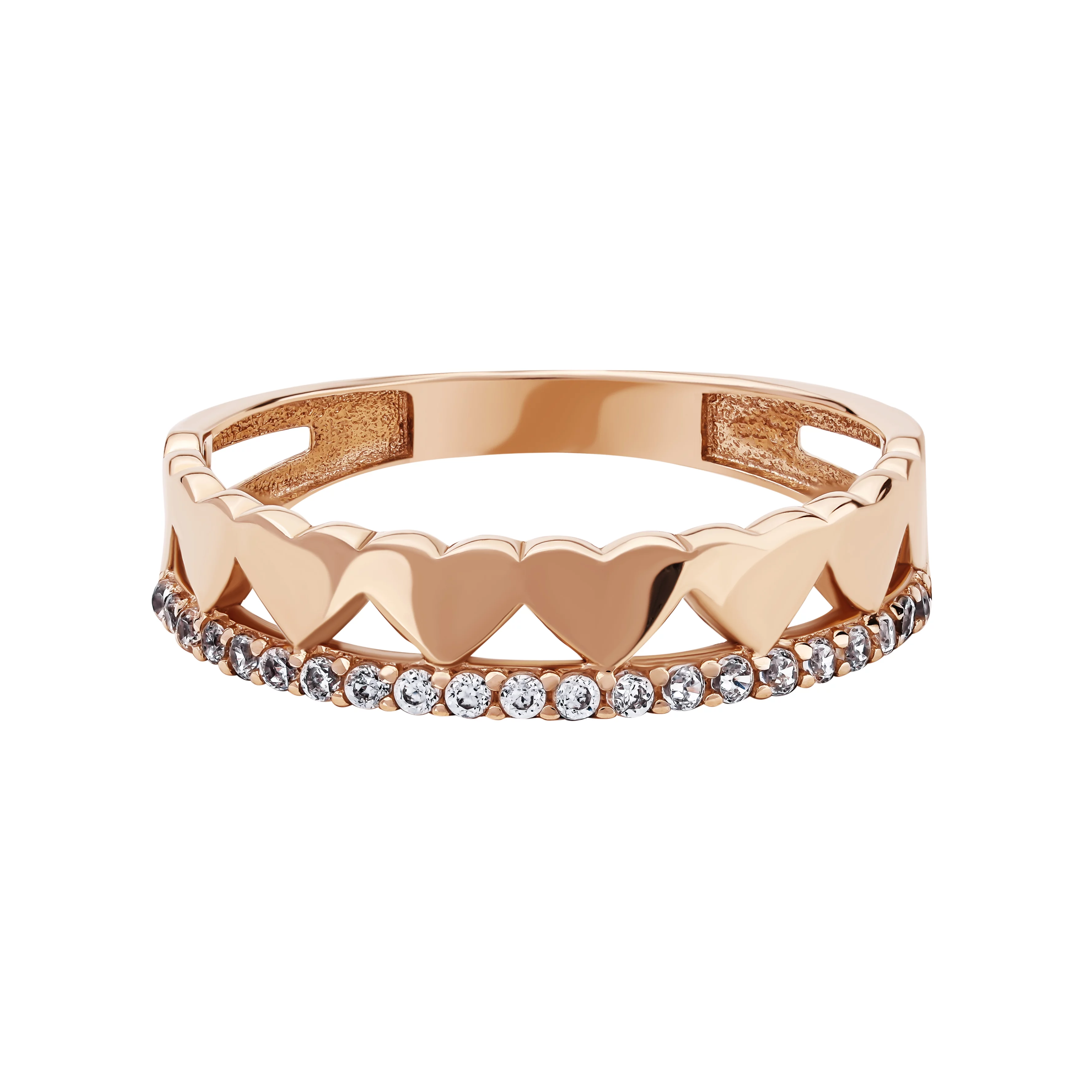 Кольцо "Сердечка" из красного золота с фианитами - 1791906
