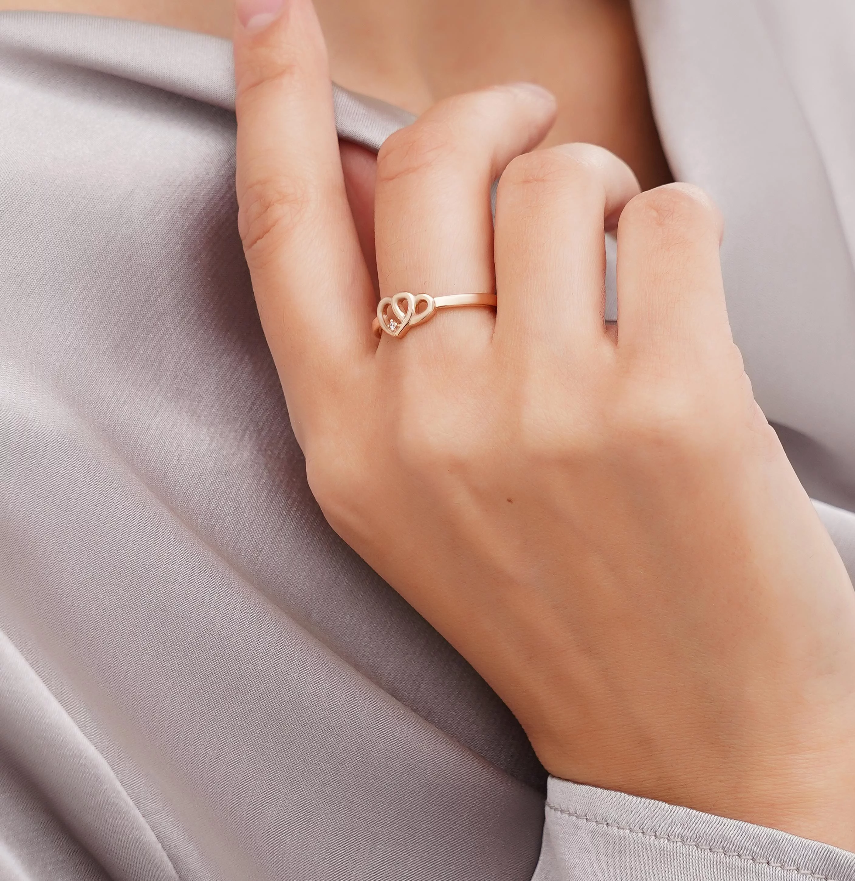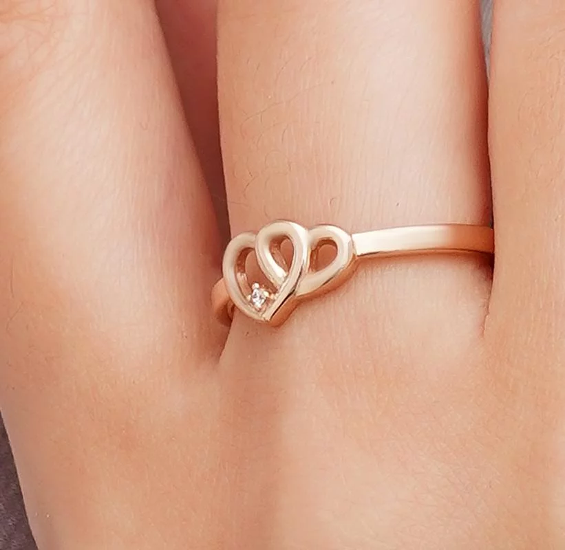 Кольцо "Цветок" незамкнутое из красного золота с фианитом и эмалью - 1451197