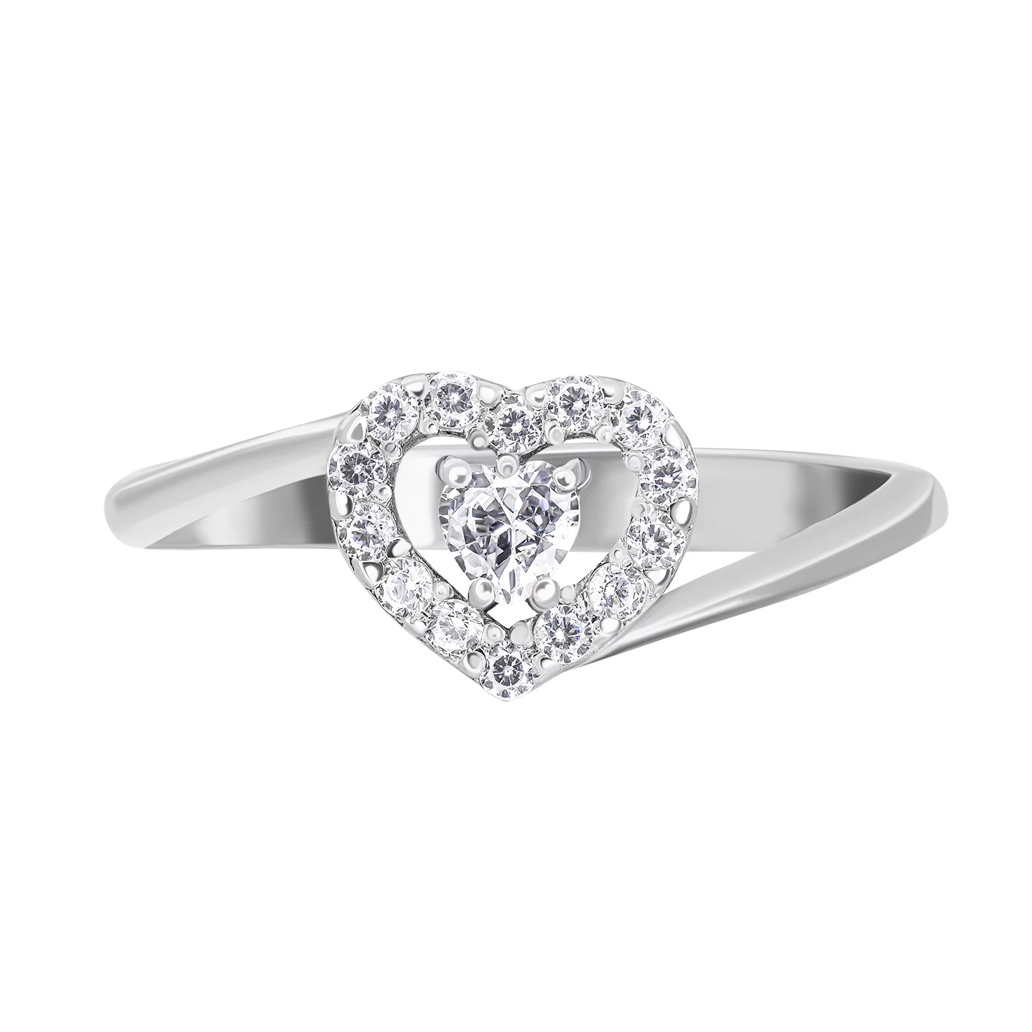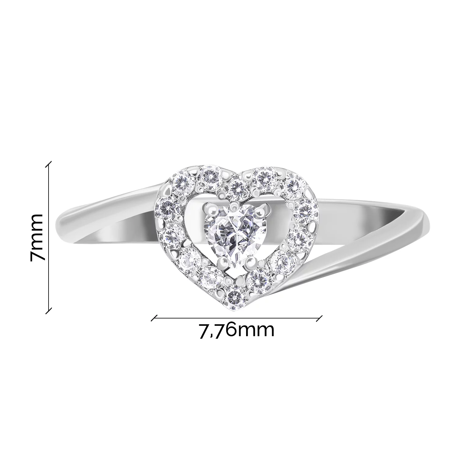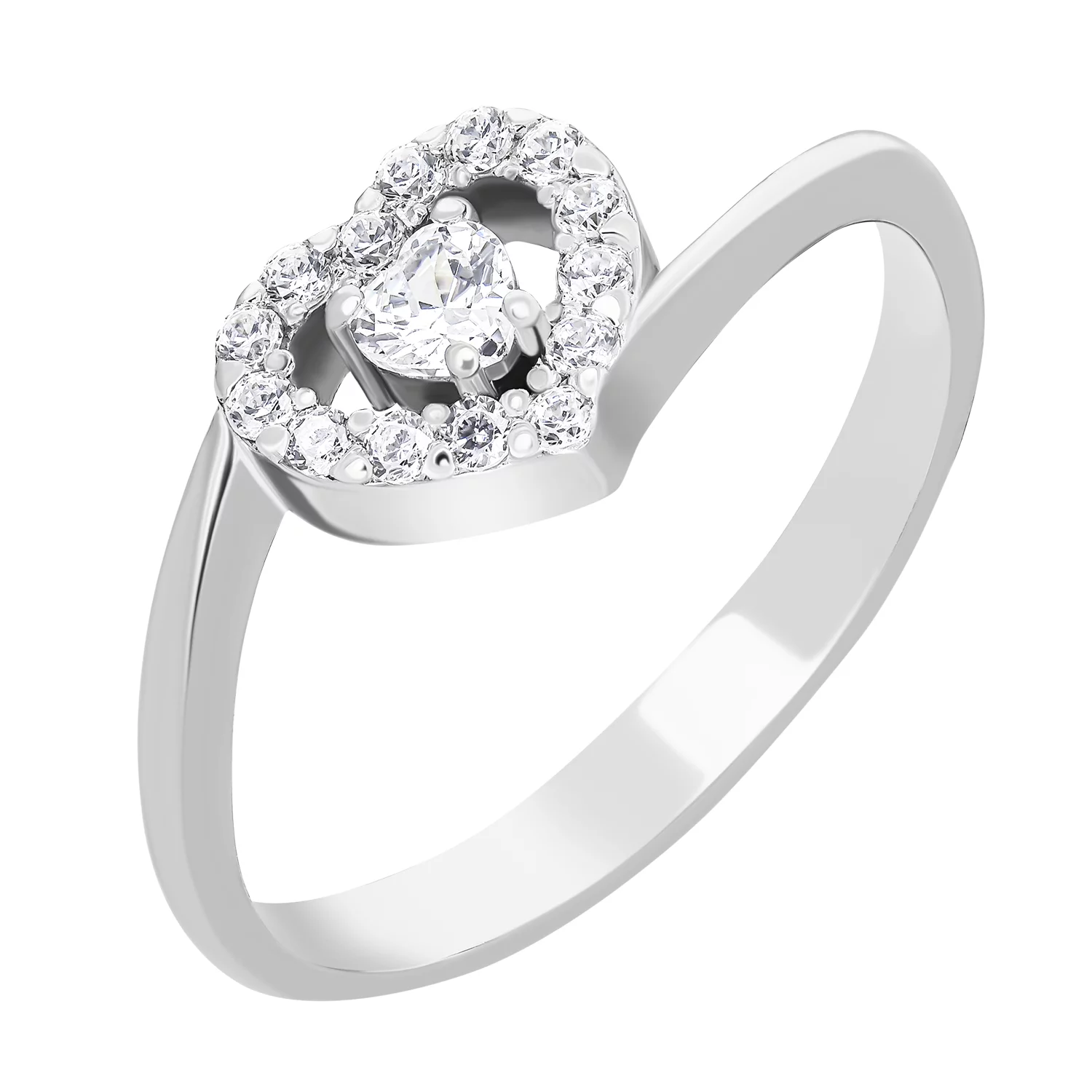 Кольцо "Сердце" серебряное с фианитами - 1594203