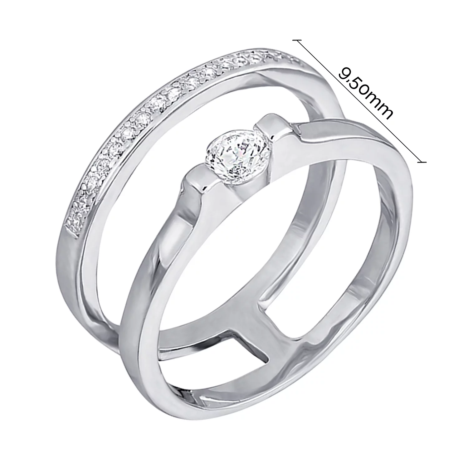 Кольцо серебряное двойное с фианитами - 1524524