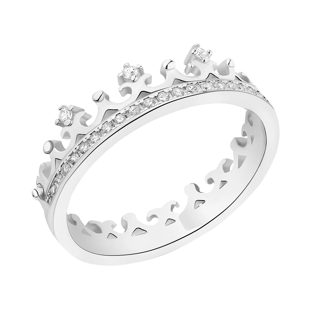 Кольцо серебряное "Корона" с дорожкой фианитов - 1562893