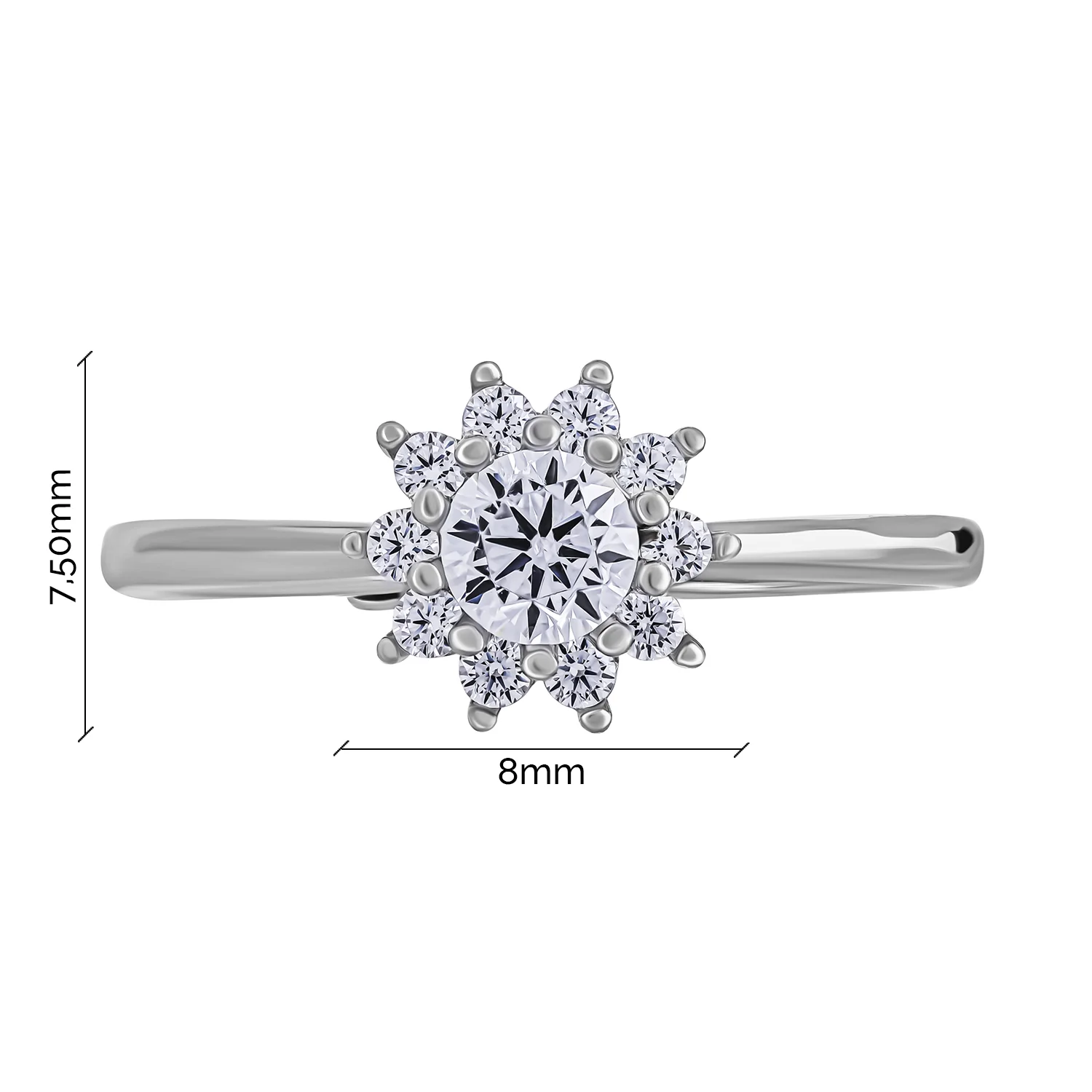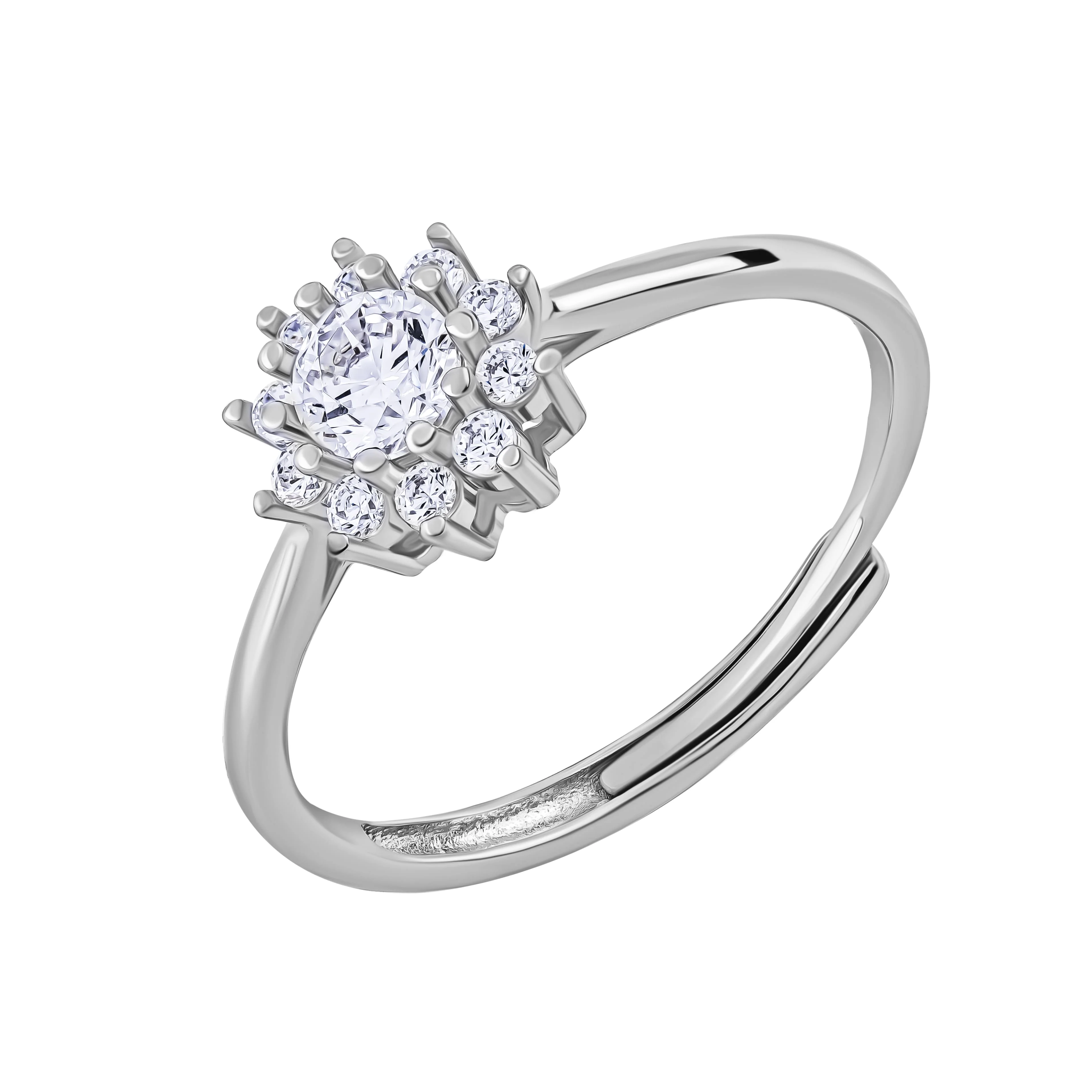 Кольцо серебряное раздвижное "Цветок" с фианитами - 1991369