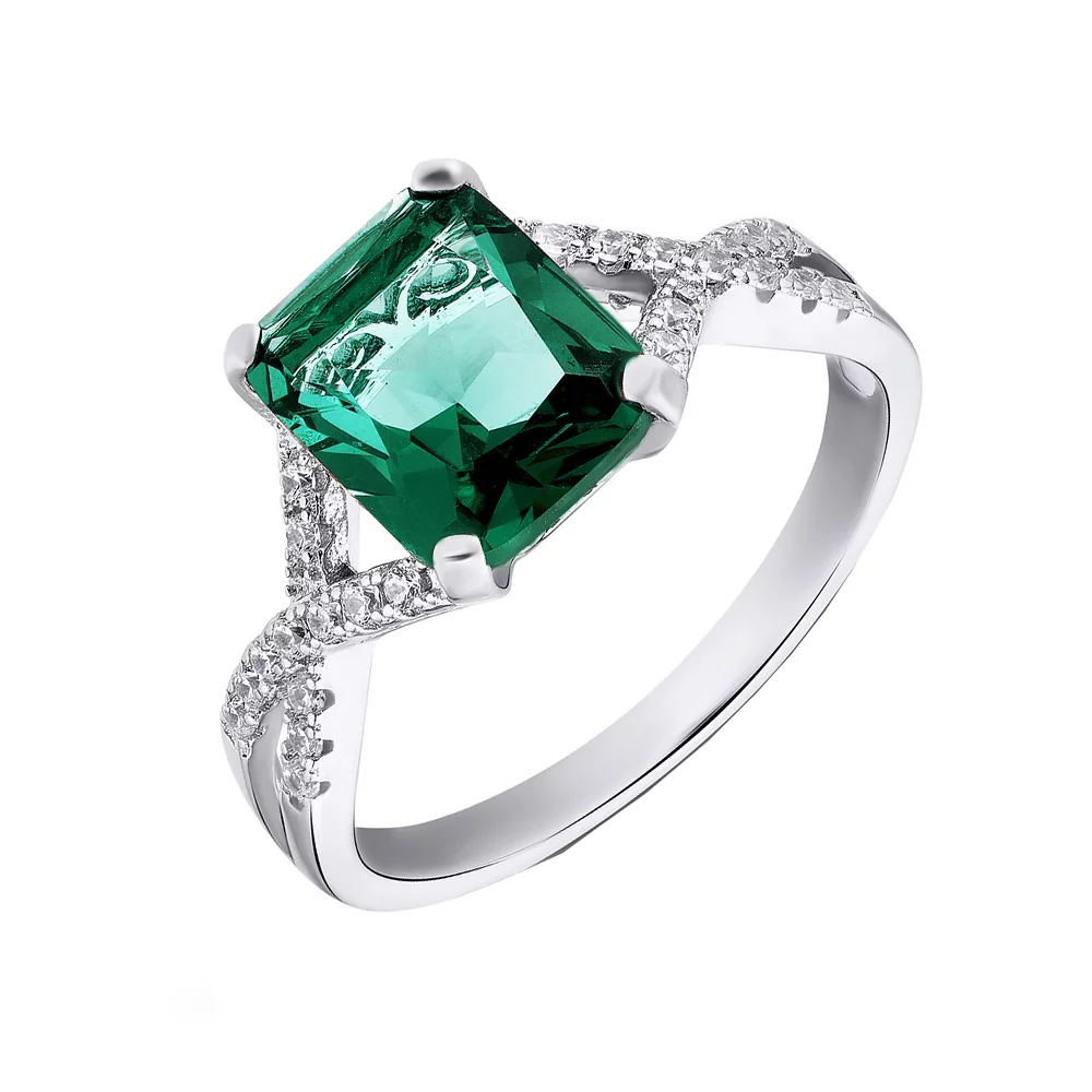 Кольцо серебряное с фианитами "Переплетение" - 1591929