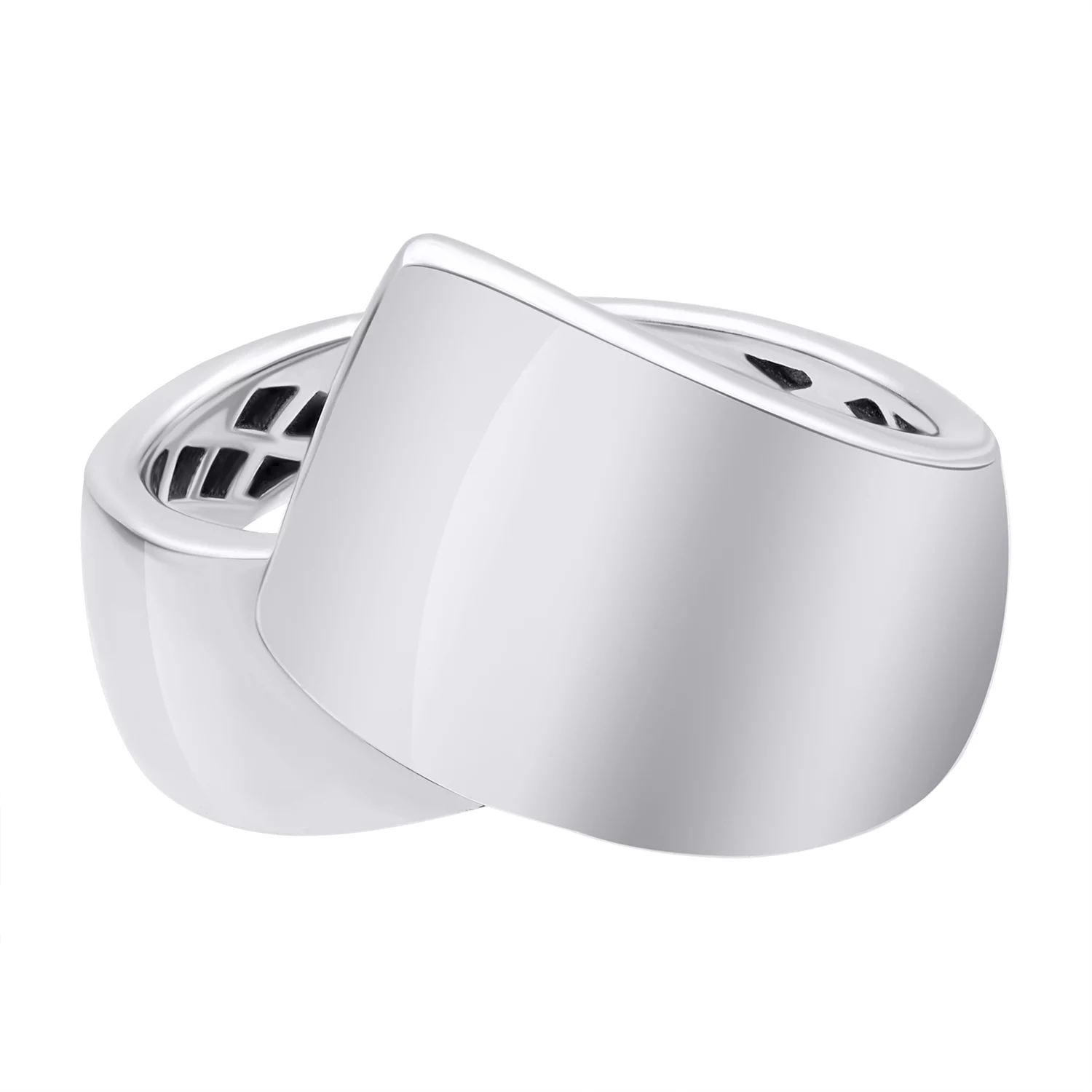 Оригинальное украшение, которое станет стильным дополнением модного образа. Кольцо хорошо смотрится как с деловым костюмом, так и с вечерним или коктейльным платьем. Изделие в современном дизайне производится из серебра 925 пробы. Платиновое напыление придает украшению яркий оттенок и глянцевый блеск. Кольцо отлично сочетается с массивными неинкрустированными серьгами из аналогичных металлов. Станет приятным пополнением коллекции украшений любой женщины, которая следует модным трендам. Отличный подарок дочери, сестре, маме или подруге.
