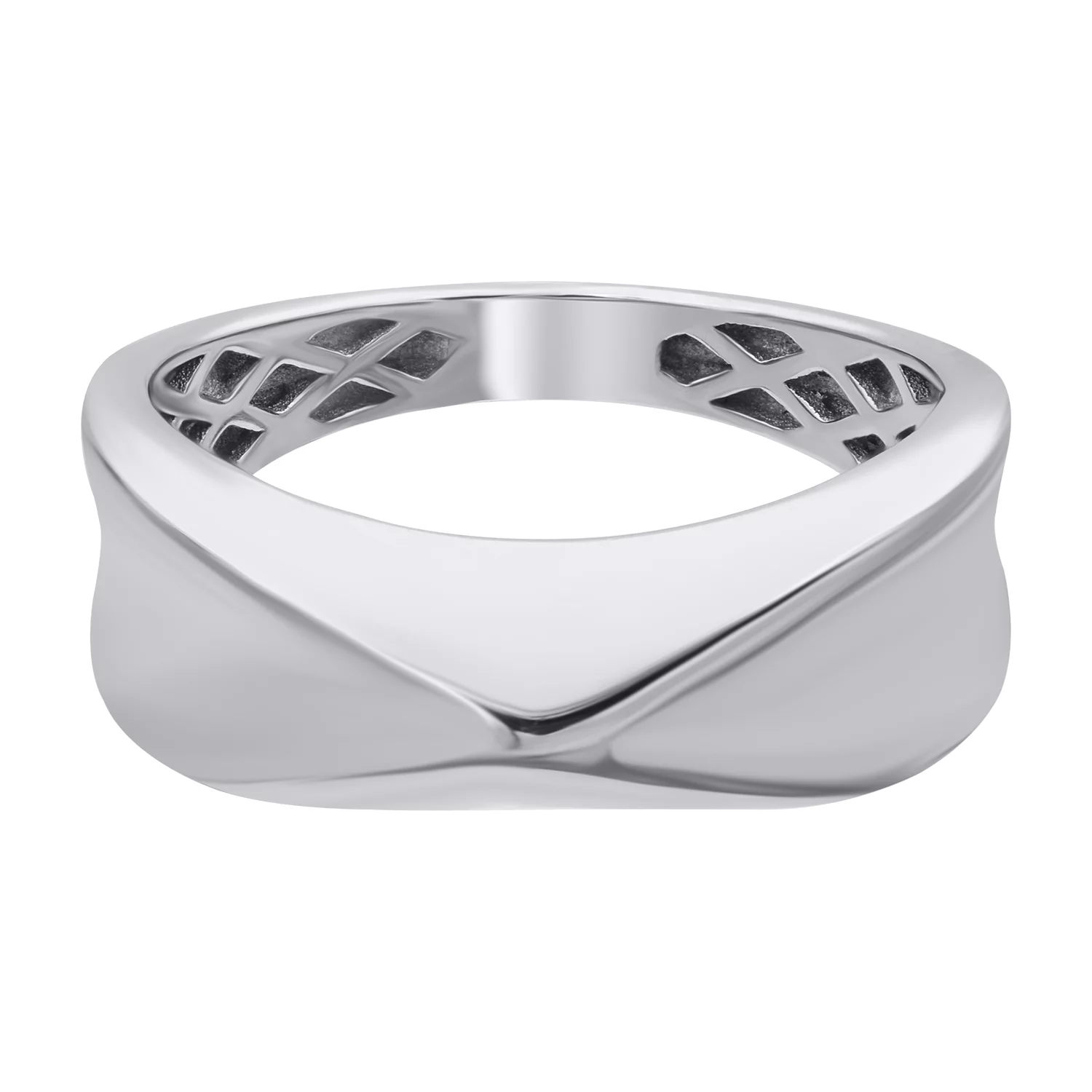 Серебряное кольцо с платиновым покрытием — стильное и оригинальное украшение, выполненное в лаконичном стиле минимализм. Необычная форма изделия украшена фигурной резьбой на внутренней стороне кольца. Перпендикулярные линии на драгоценности встречаются в центре, создавая невесомое очертание двух треугольников. Изделие изготовлено из серебра 925 пробы. Белый цвет, придающий украшению утонченности, получен благодаря добавлению в сплав платины. Такое кольцо станет хорошим стильным решением — современный аксессуар выгодно подчеркнет любой модный образ.