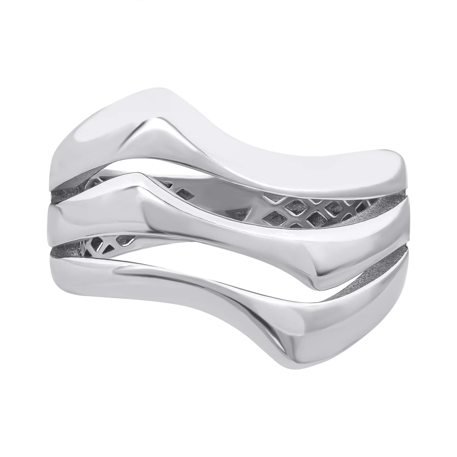 Изящное кольцо с тремя тонкими изгибами подчеркивает красоту женских пальцев. Оно дополняет повседневный или торжественный образ, делая его завершенным. Серебро высшей пробы покрыто слоем платины — редкого благородного металла. Такая комбинация делает украшение устойчивым к истиранию, царапинам и окислению. Это значит, что спустя годы кольцо будет выглядеть как новое: гладким и блестящим, без намека на тусклость. Поскольку украшение содержит минимум лигатуры, оно подойдет людям, которые ценят благородство чистого металла.