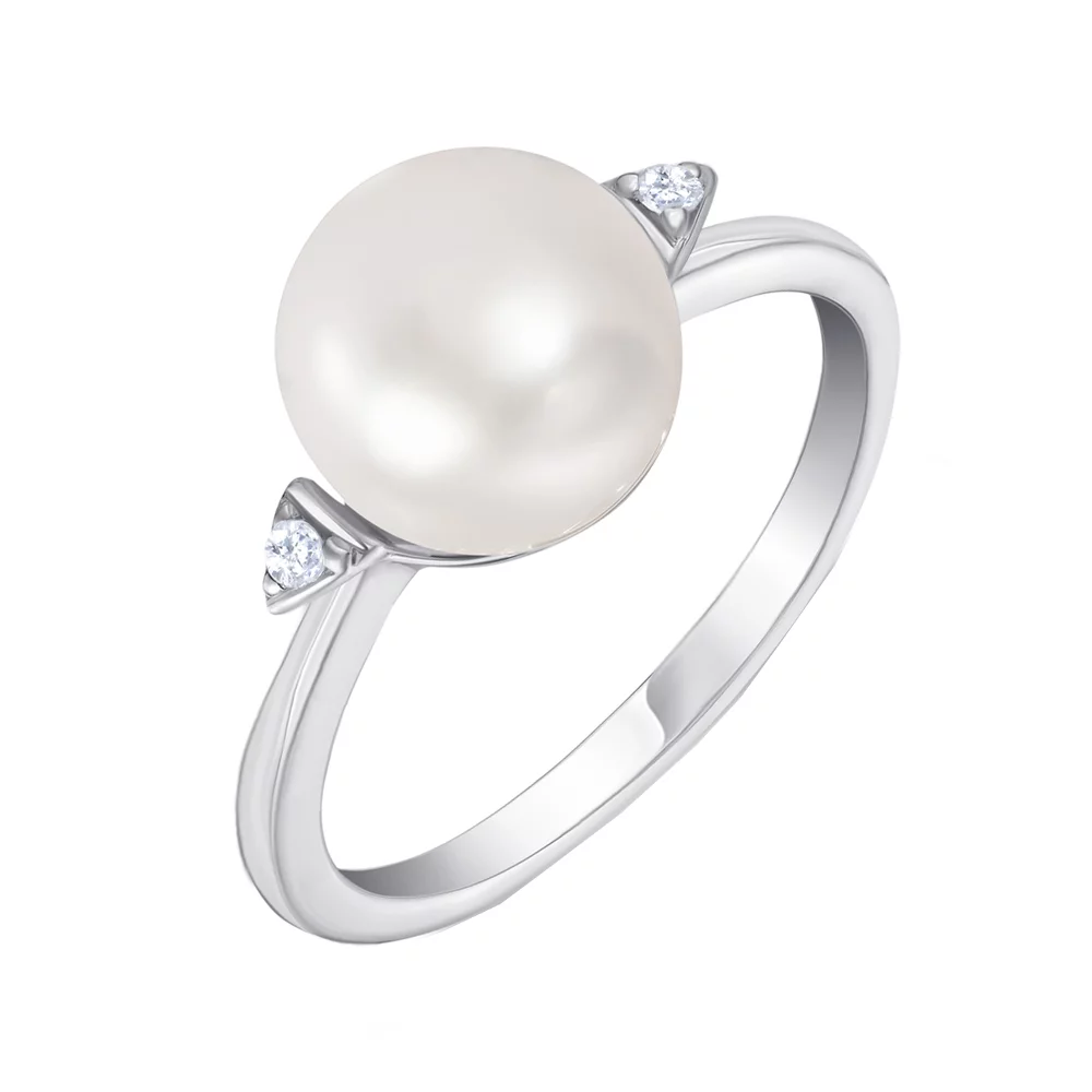 Кольцо серебряное с жемчугом и фианитами - 1571940