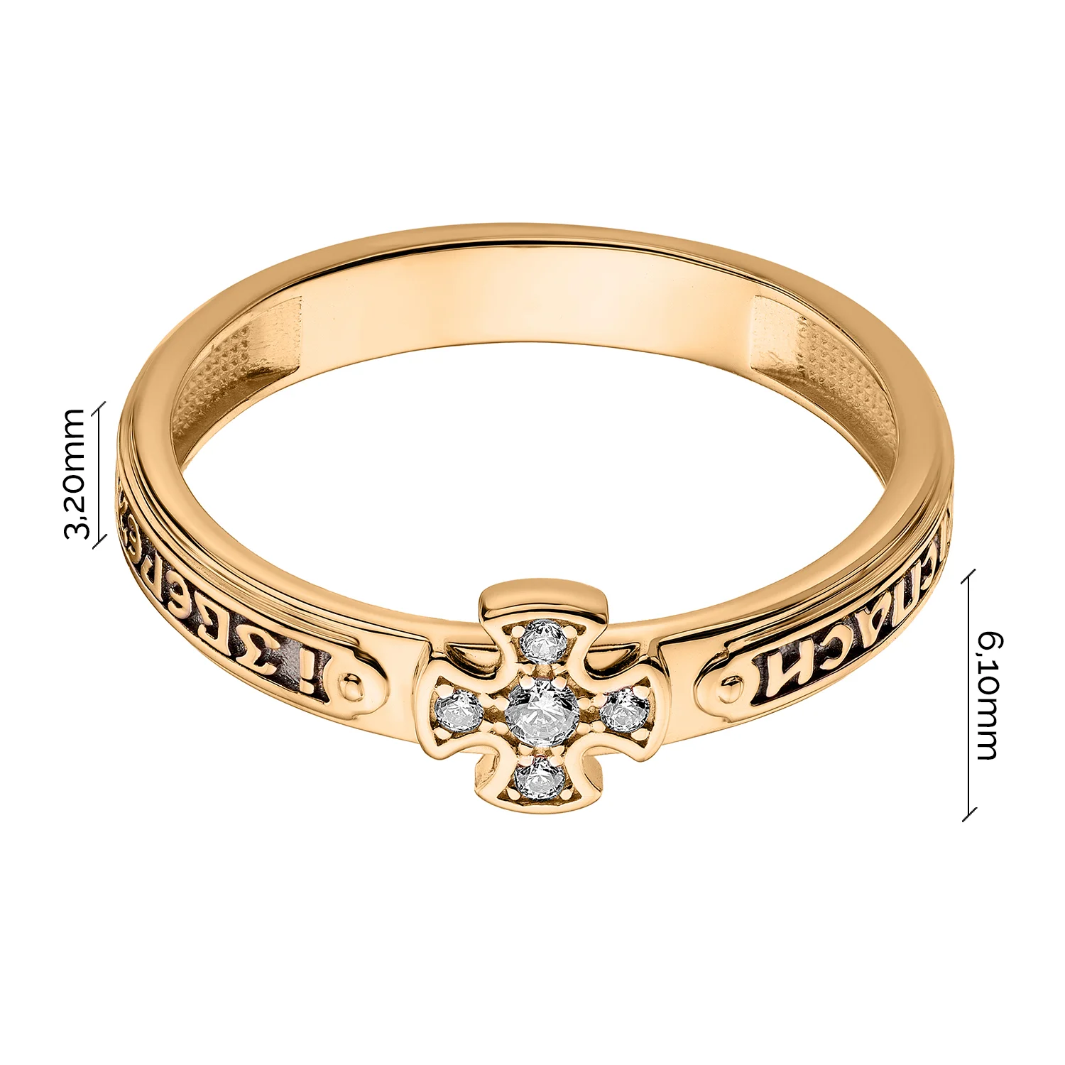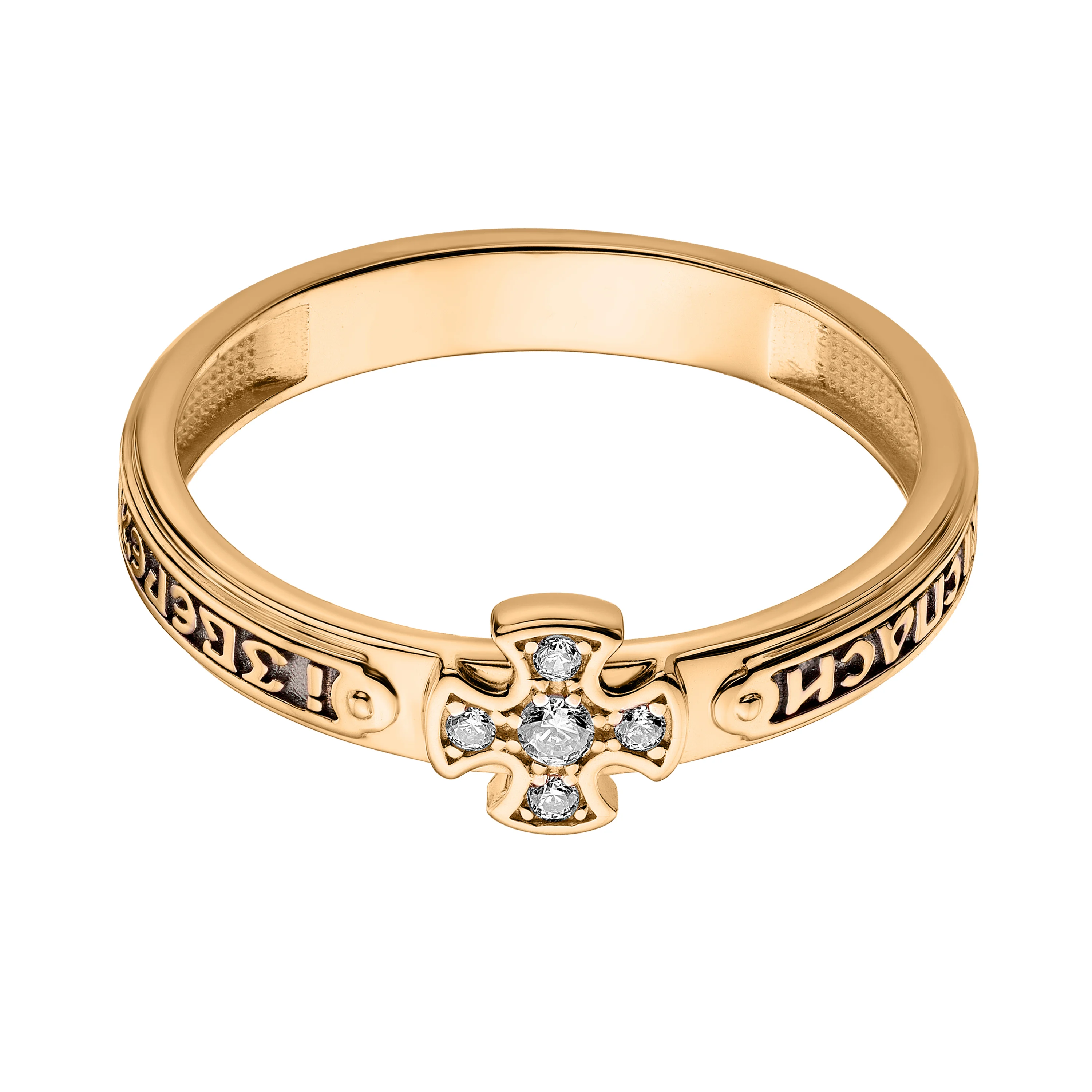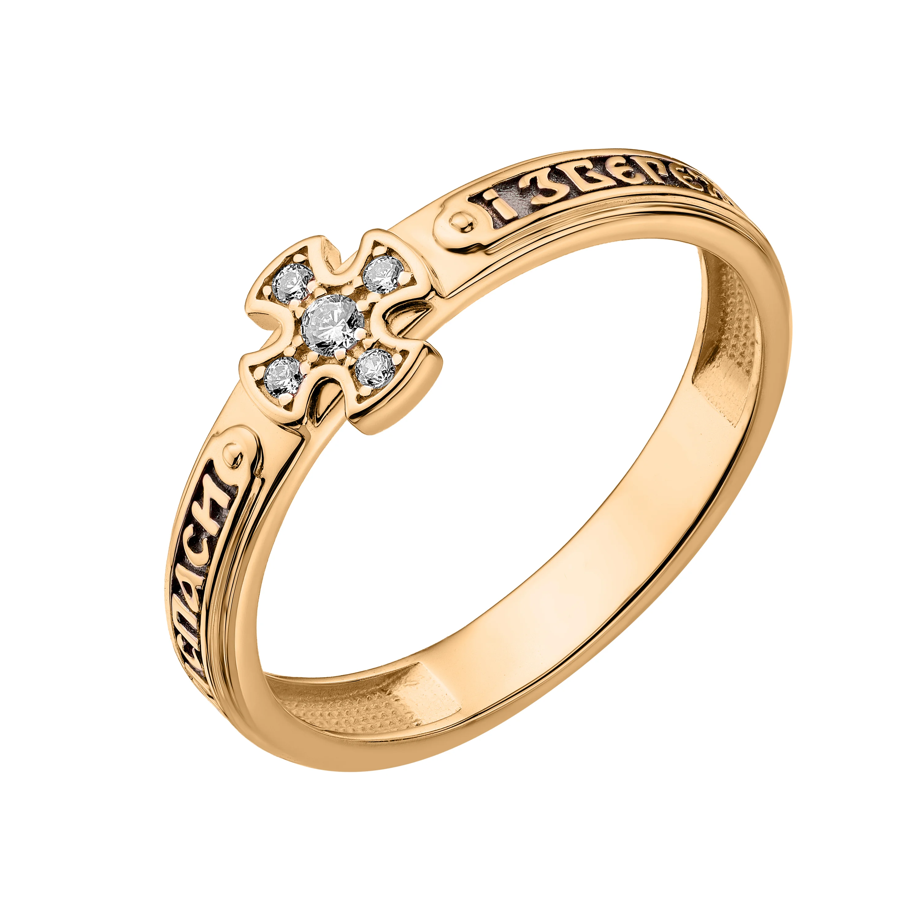 Кольцо "Спаси и сохрани" с чернением из красного золота с фианитами - 2230216