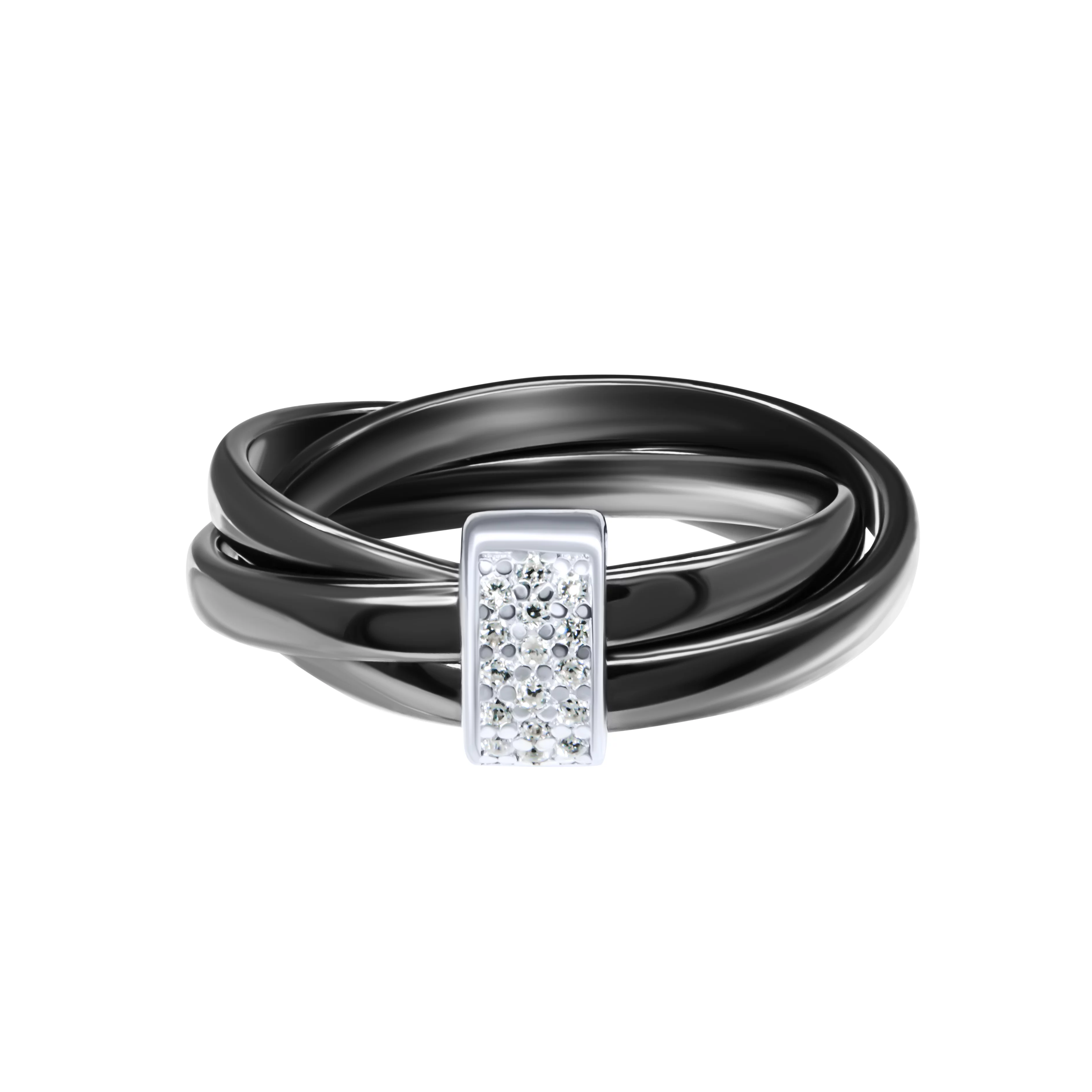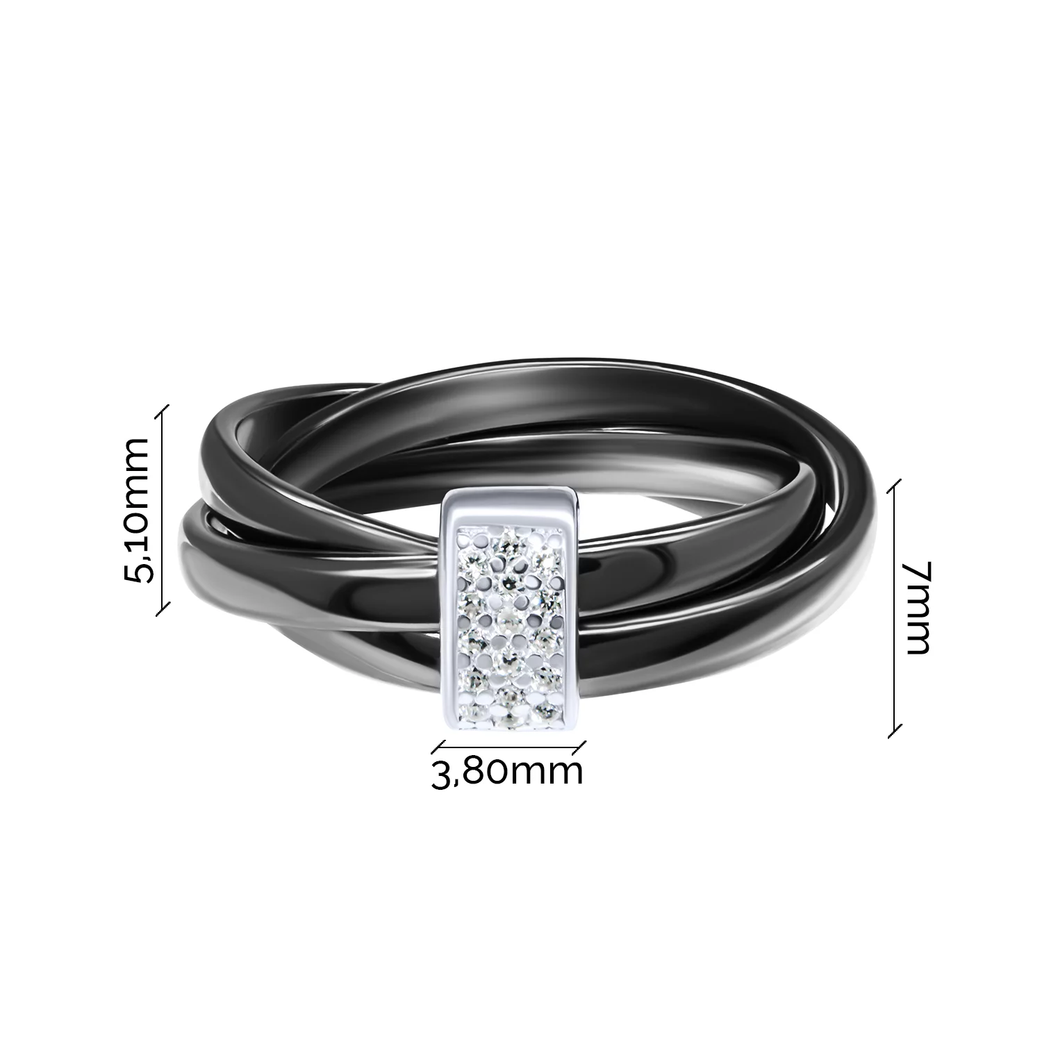 Кольцо тройное "Переплетение" из серебра с керамикой и фианитами - 1815015